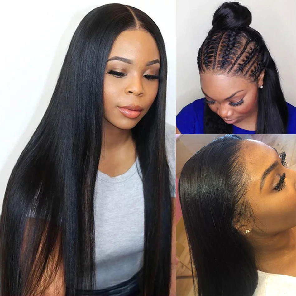Фронтальный парик с кружевом 30 дюймов 13x4, парик с фронтальной застежкой, предварительно отобранные прямые человеческие волосы, парики для чернокожих женщин, человеческие волосы Remy