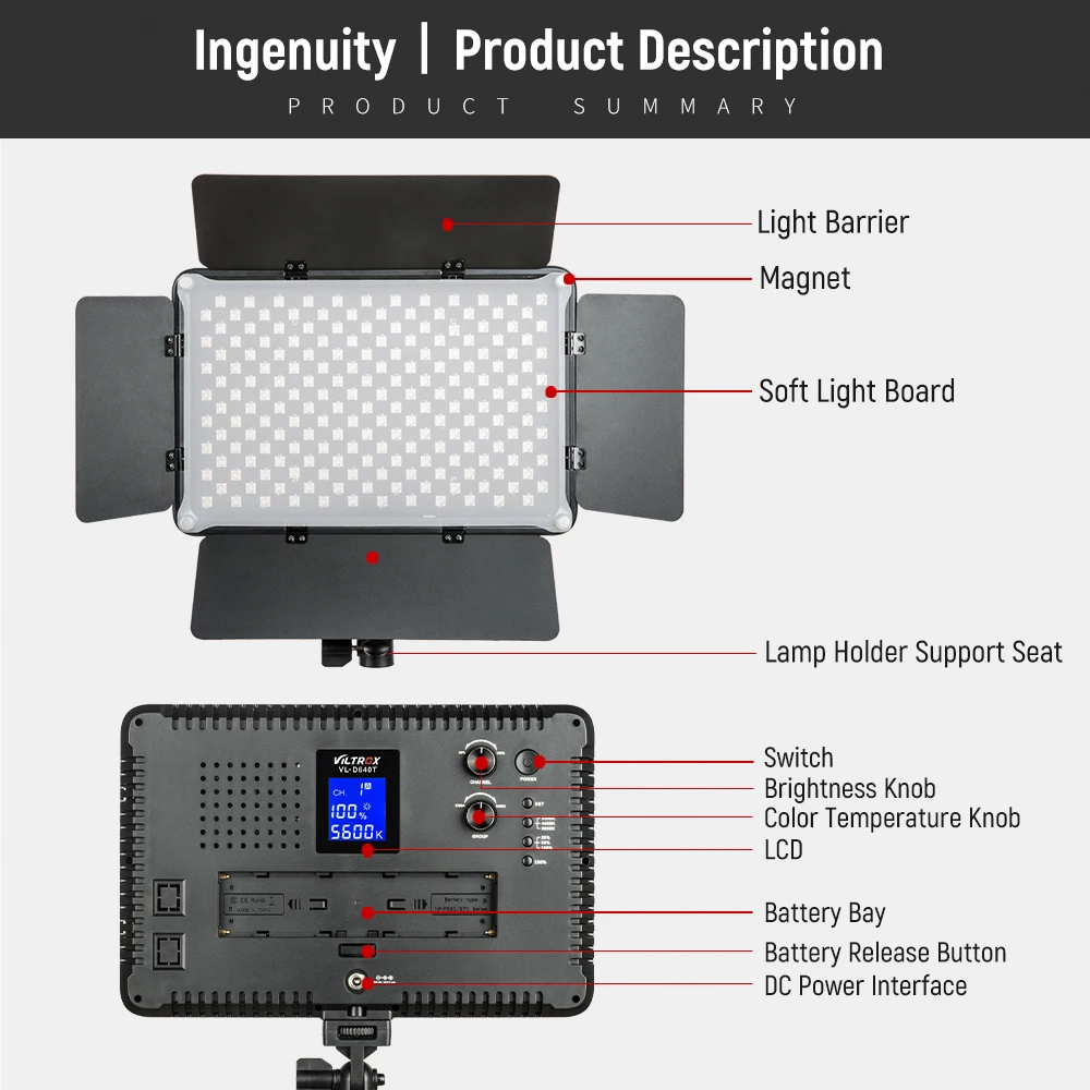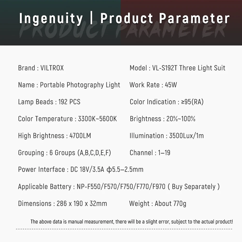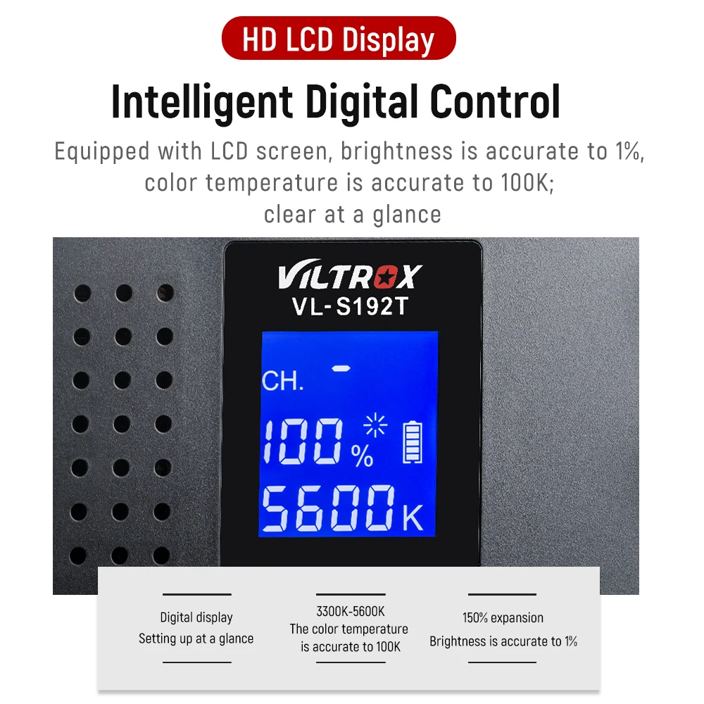 VILTROX VL-S192T светодиодный светильник. Он принимает 192 шт. высококачественные светодиодный лампы высокой яркости, широкий диапазон облучения и мягкий светильник.Цветовая температура и яркость можно регулировать в соответствии с вашими потребностями. И он настолько портативный, что подходит для наружной съемки и более разнообразных съемок.