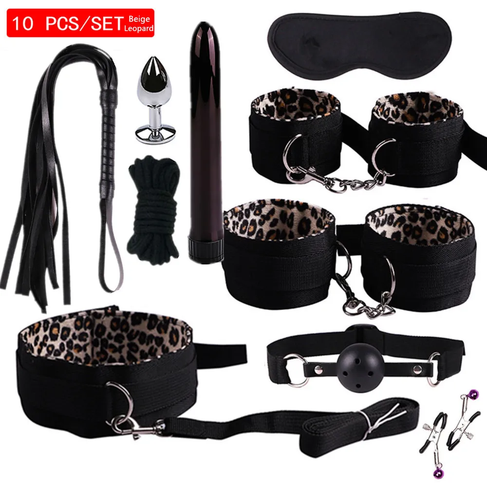 Наборы игрушек для взрослых, сексуальное нижнее белье 10 шт.партия, наручники, плетка, веревка, Анальный вибратор, экзотические товары для пар