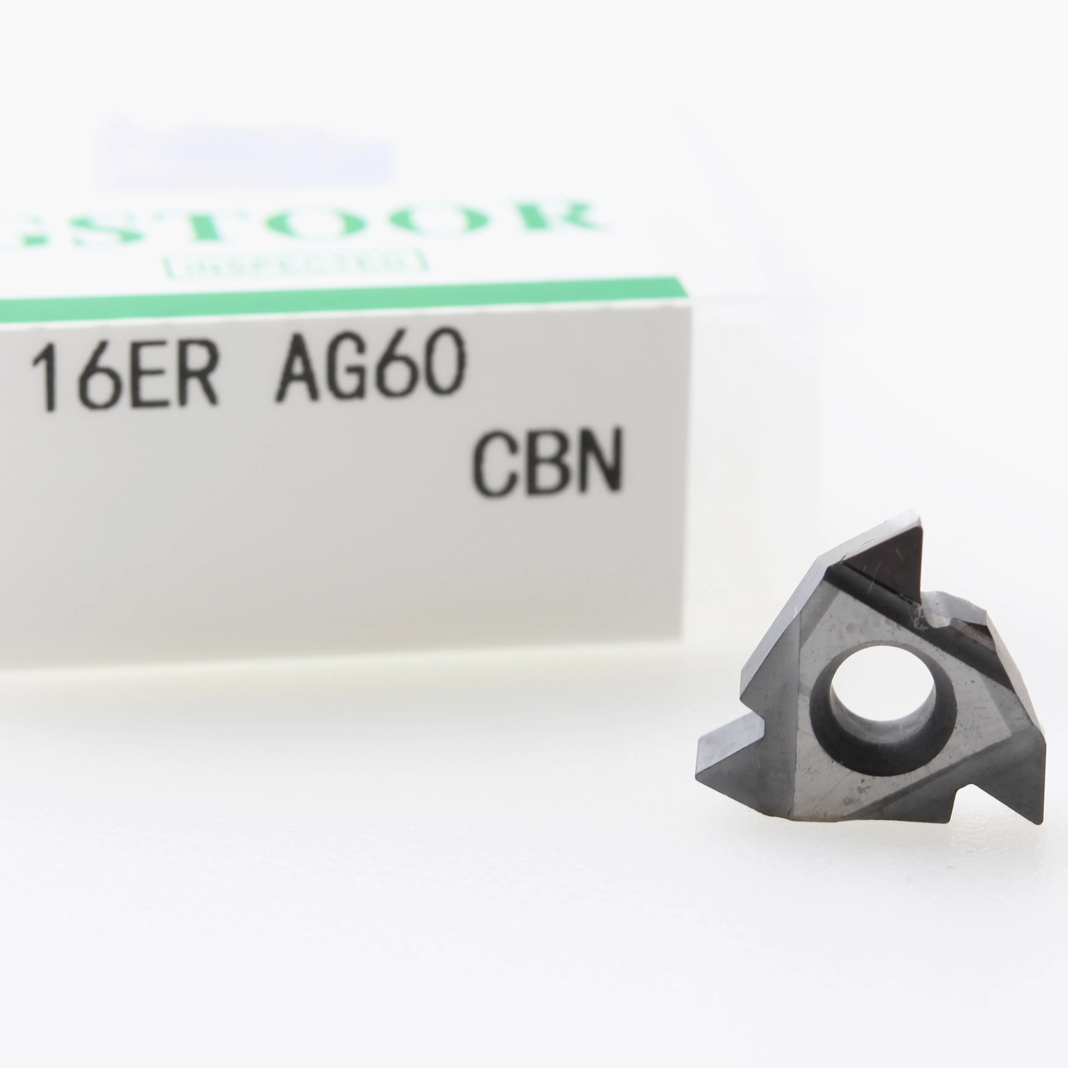 CBN: он обладает чрезвычайно стабильными химическими свойствами для черных металлов и используется для закаленной стали (45-65HRC), подшипниковой стали (60-62HRC), быстрорежущей стали (>62HRC), инструментальная сталь (57-60HRC), а также охлажденное чугунное грубое токарное и тонкое токарное изделие также предназначены для высокотемпературных сплавов, термораспылительных материалов, Твердые сплавы, содержащие более 10% Co и другие сложные к машине высокоскоростные процессы резки, которые могут осуществить поворот вместо шлифовки, значительно повышая эффективность обработки