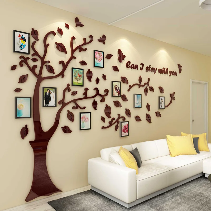 Теплое семейное фото дерево 3D Качественные акриловые наклейки на стену фоторамка для домашнего декора Сделай Сам творческий фон с птицей деревом обои