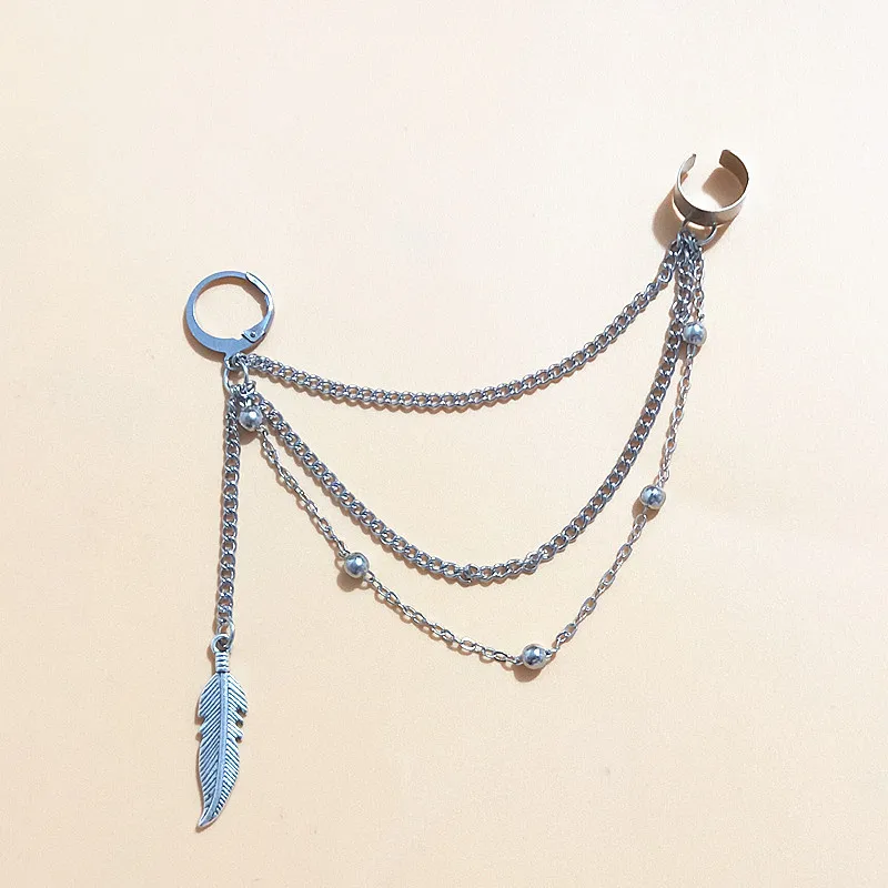 Клипса для ушей, серьги-манжеты в виде листа, унисекс, панк, кисточ...
