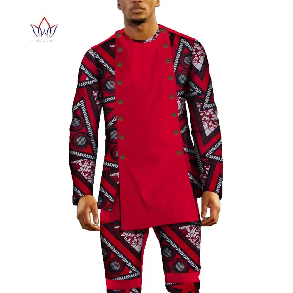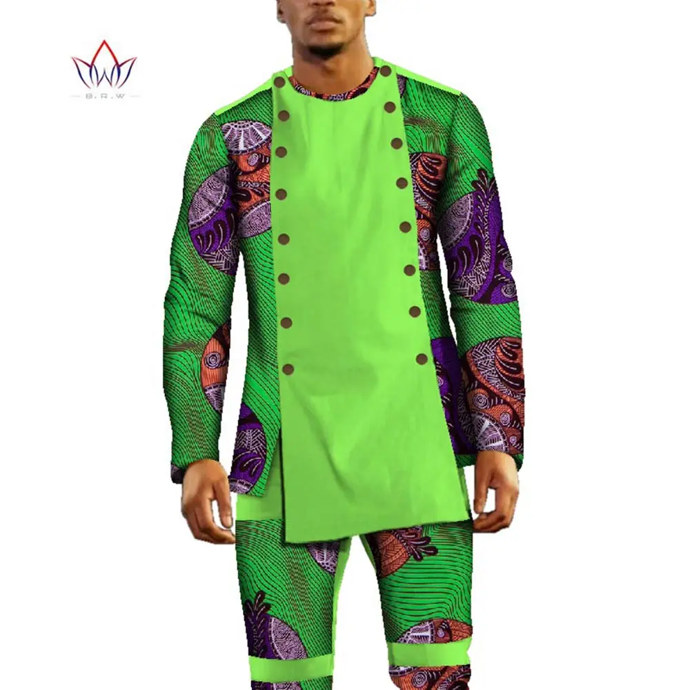 Bazin богатые мужские комплекты из 2 предметов, африканский дизайн одежды, африканская одежда, повседневная мужская длинная рубашка и брюки, комплект WYN553