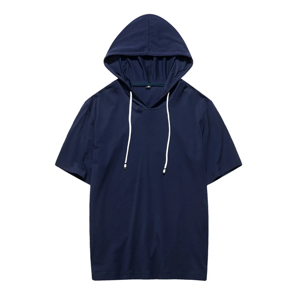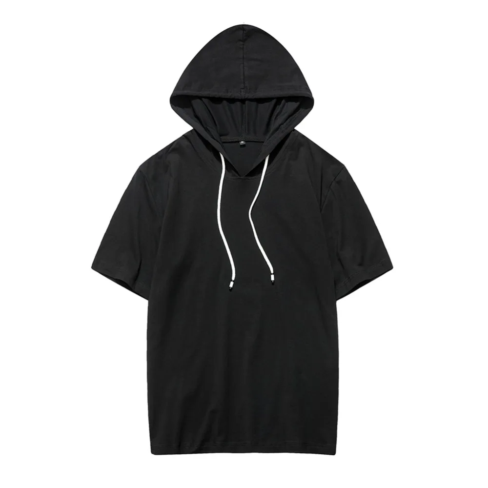 Футболка мужская свободного покроя с капюшоном, повседневная тенниска с короткими рукавами, майка спортивная, однотонная, лето 2022