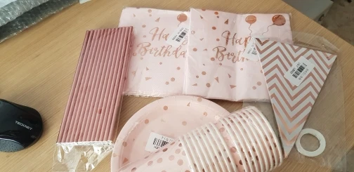 Ужасное качество : тарелки и стаканы тонкие, трубочки сплошная бумага. Завышенная цена. Не стоит своих денег. Не рекомендую.