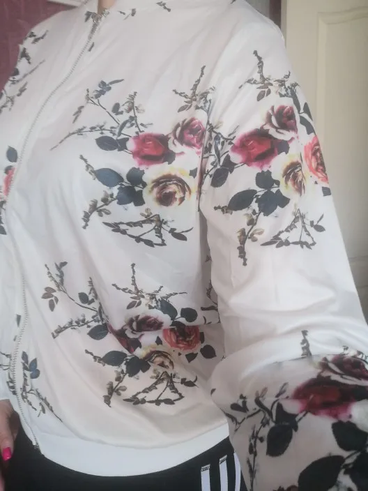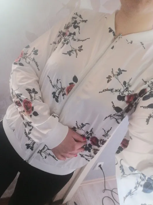 Куртка-бомбер женская на молнии, с длинным рукавом, с цветочным принтом, размера плюс