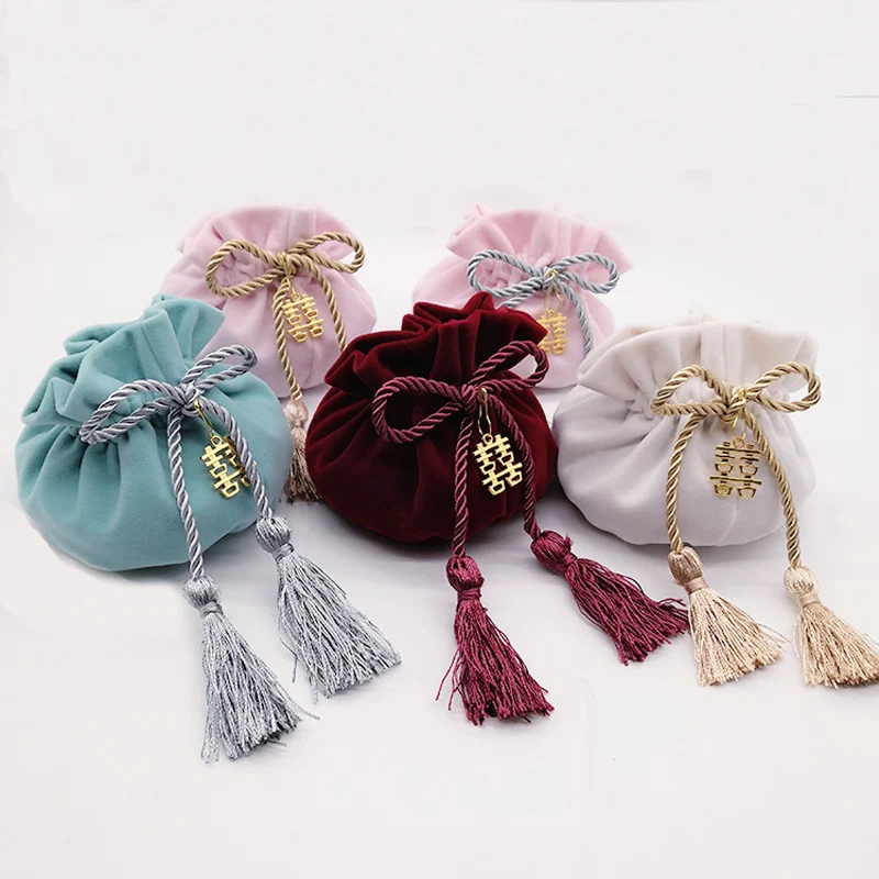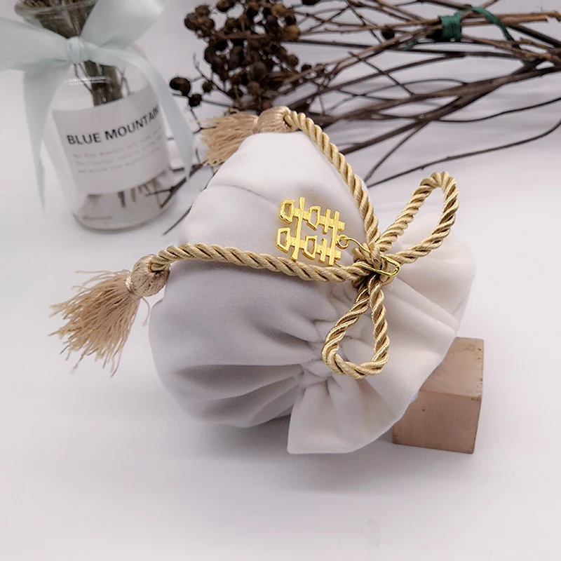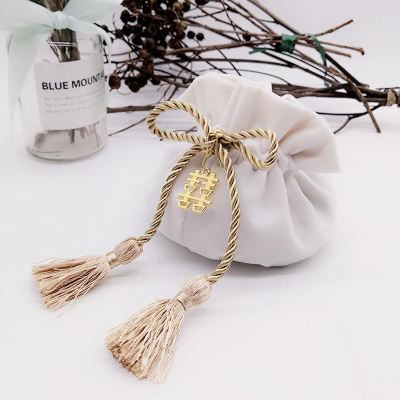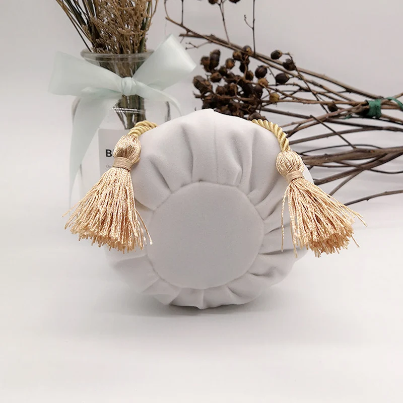 10 шт., белая Золотая круглая подошва с кисточкой + металл 12x17 см, ювелирные изделия на шнурке, Подарочная сумка, большие сумки, бархатная Свадебная сумка для конфет