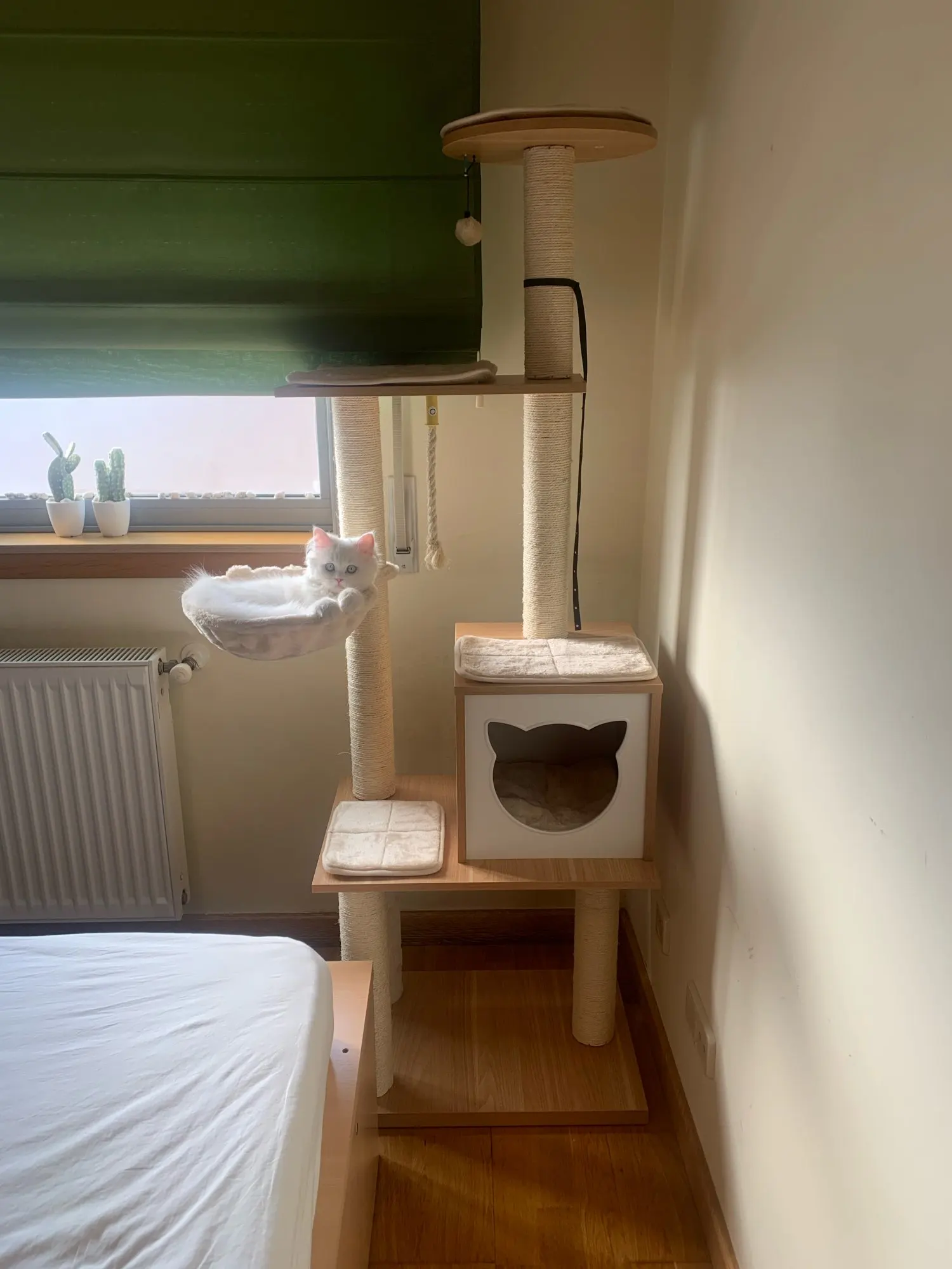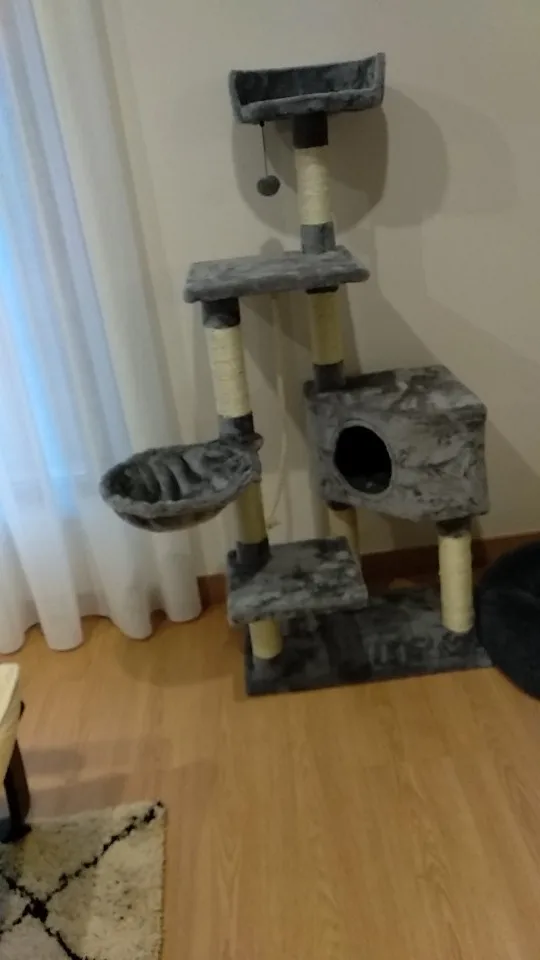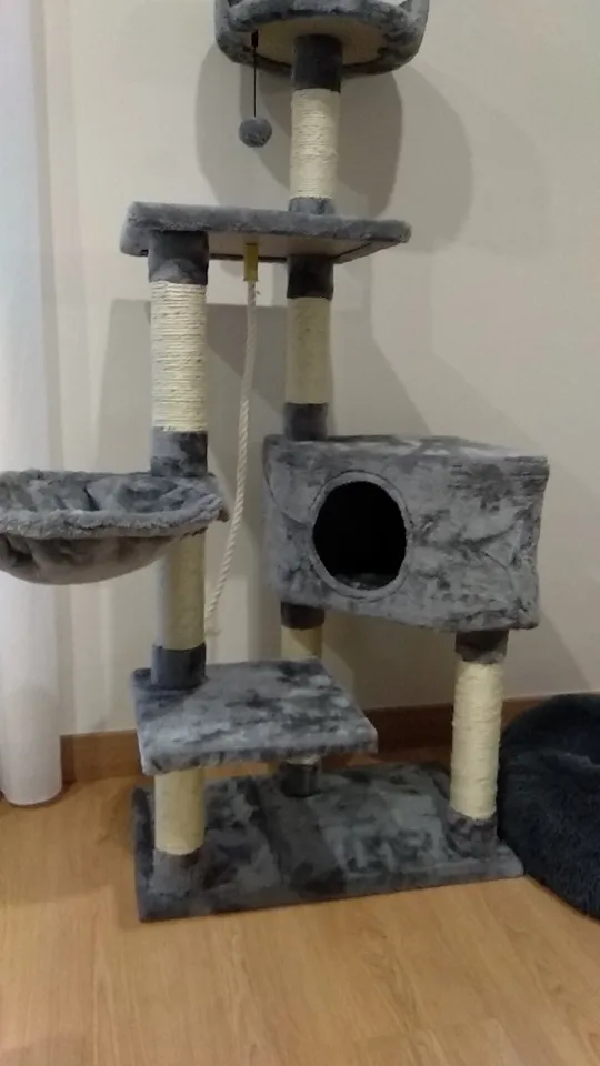 ·Красивый и крепкий: это современное и обновленное дерево с гладкой конструкцией и стильными finises выглядит чистым и великолепным. Его сверхмощный плинтус и хорошо сбалансированный дизайн обеспечивают его стабильность. Ремень безопасности позволяет ему быть прикрепленным к стене помогает предотвратить затягивание