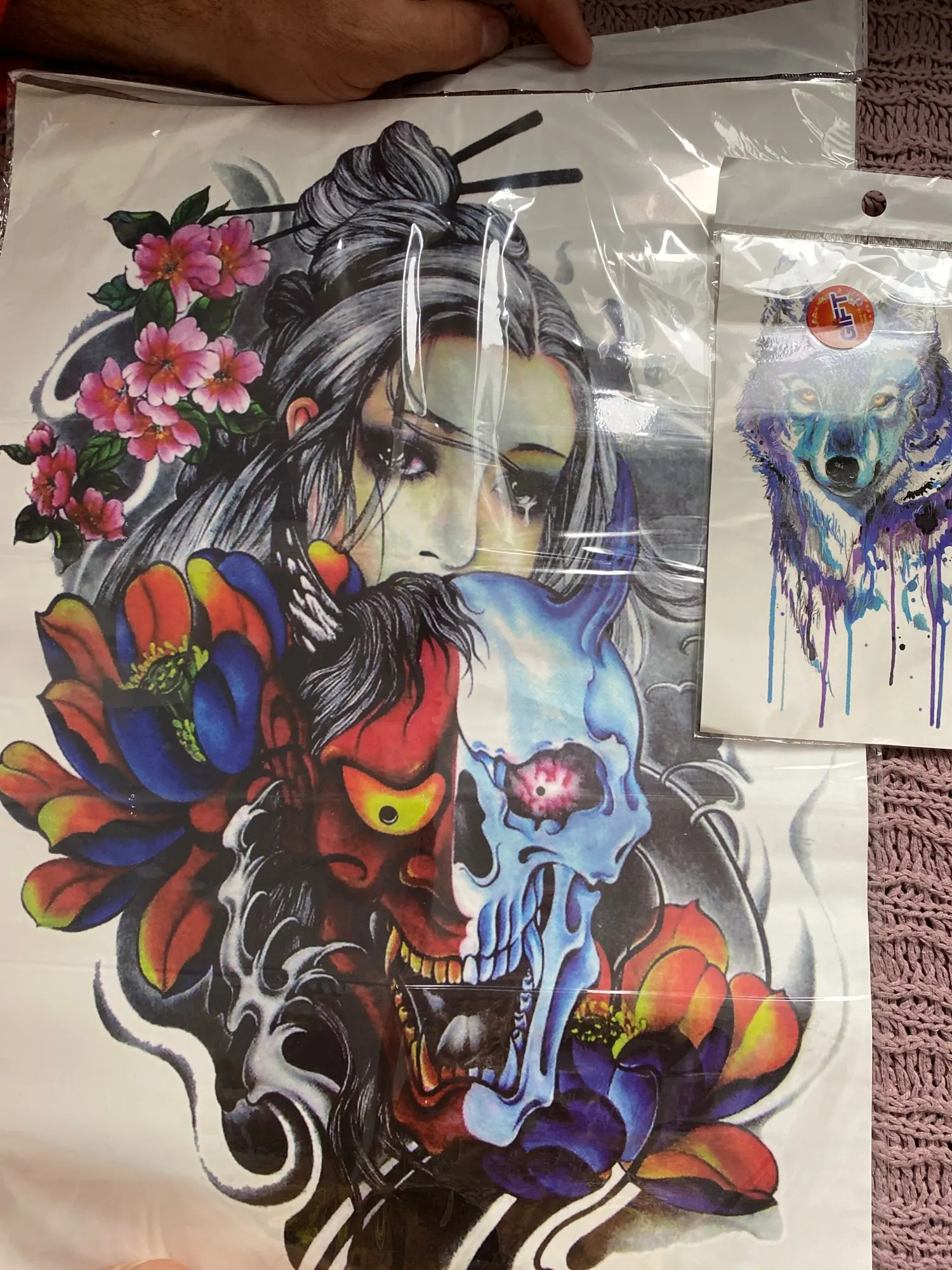 Большие тату-гейши для мужчин и женщин, большие водостойкие наклейки на все тело, тату с драконом и черепом, 48*35 см