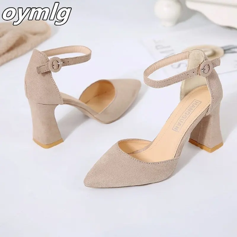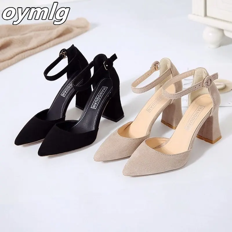 Baotou/женская летняя одежда; Новинка 2021 года; Модная обувь в Корейском стиле на толстом каблуке с острым носком и стразами
