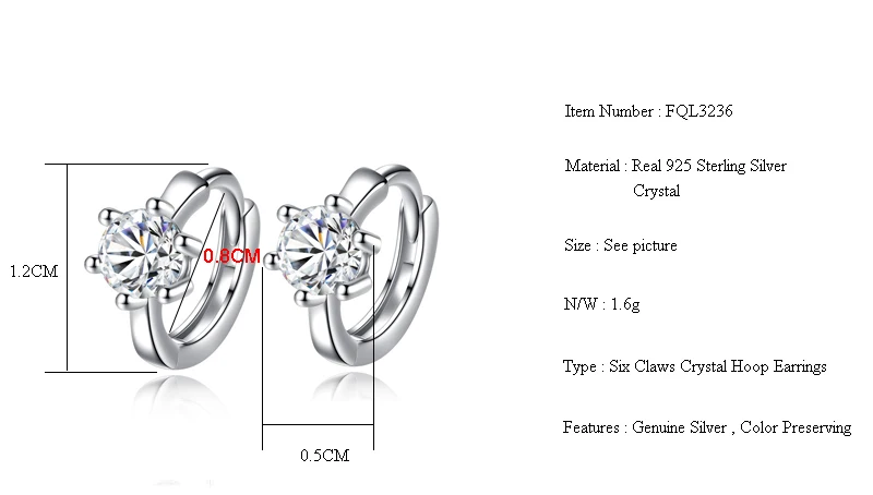 Женские серьги-кольца Fanqieliu, из серебра 925 пробы, с круглым шестигранным кристаллом, FQL3236