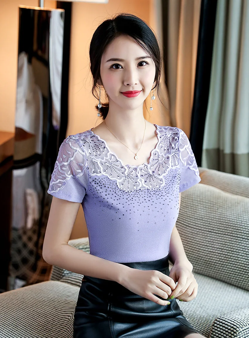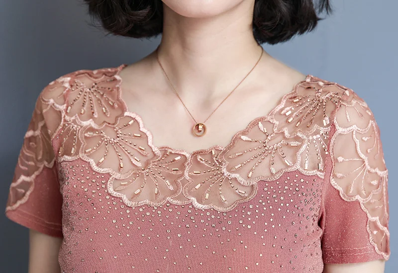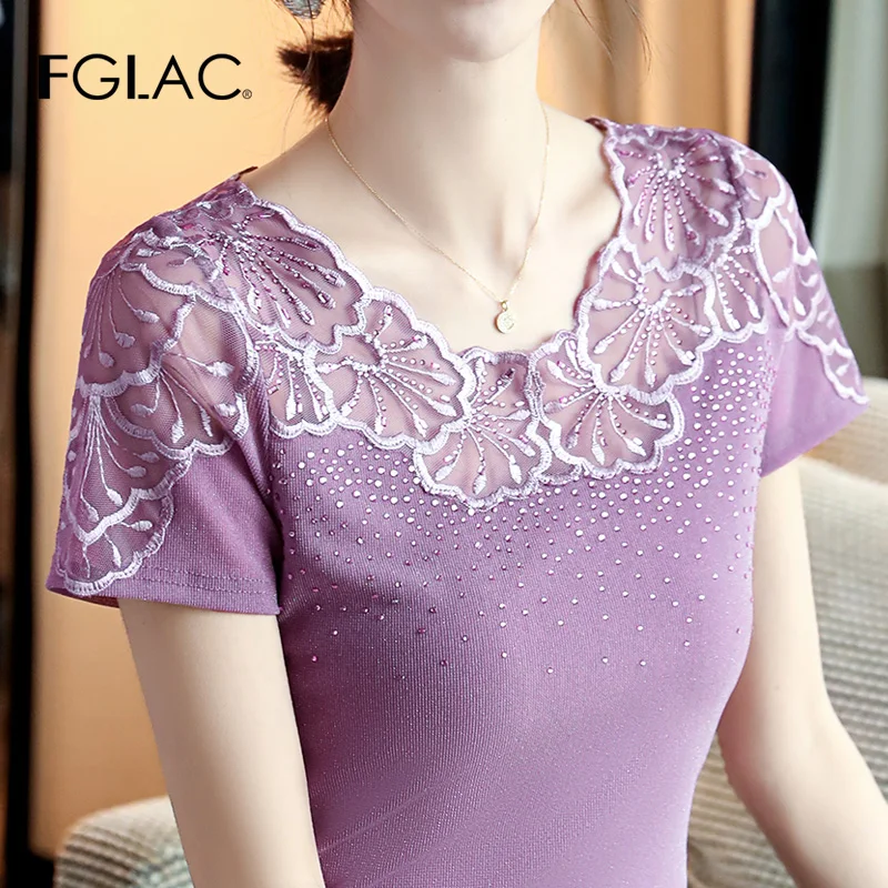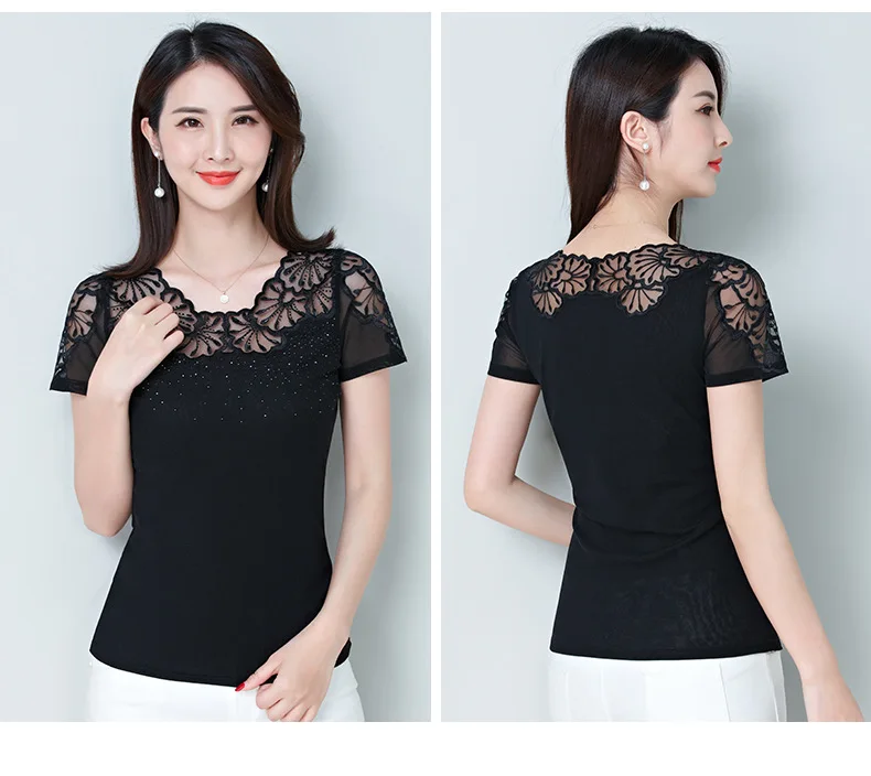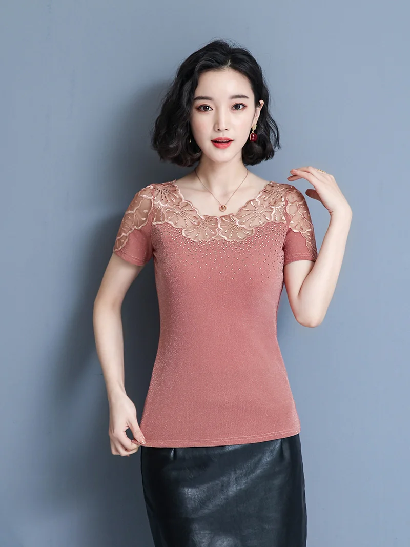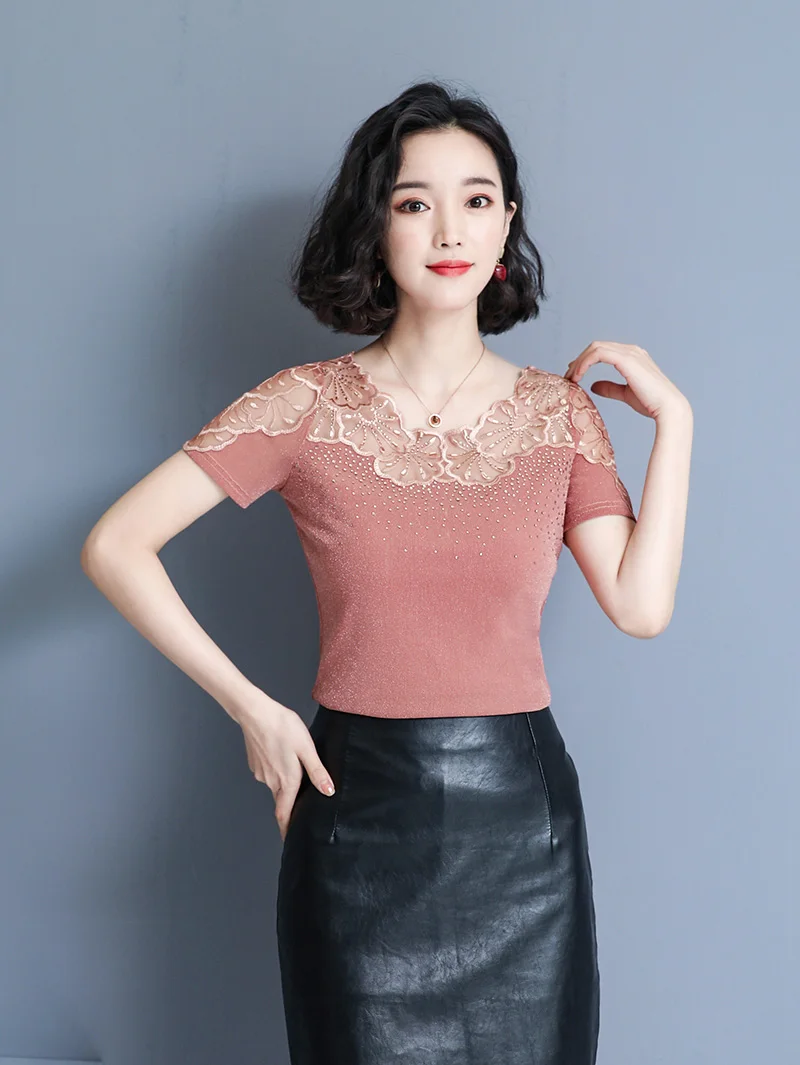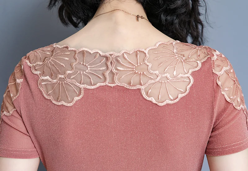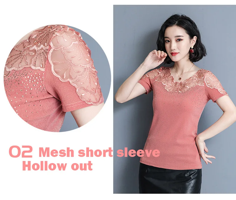 Женская футболка, Новые поступления 2021, летние сетчатые Топы с коротким рукавом, модные повседневные женские топы с вырезами, кружевная рубашка в стиле пэчворк