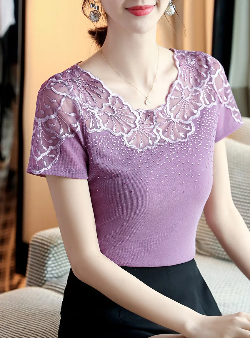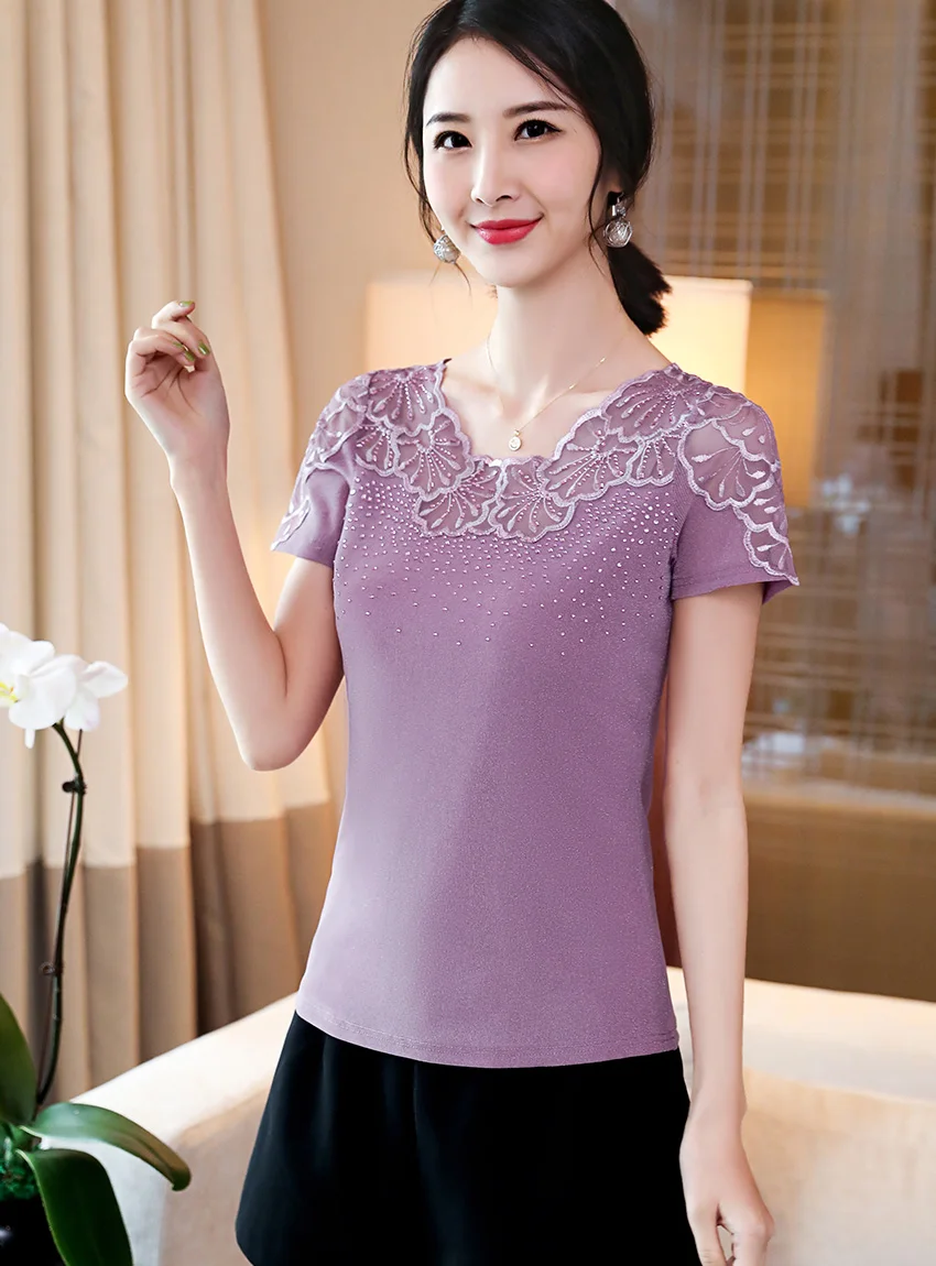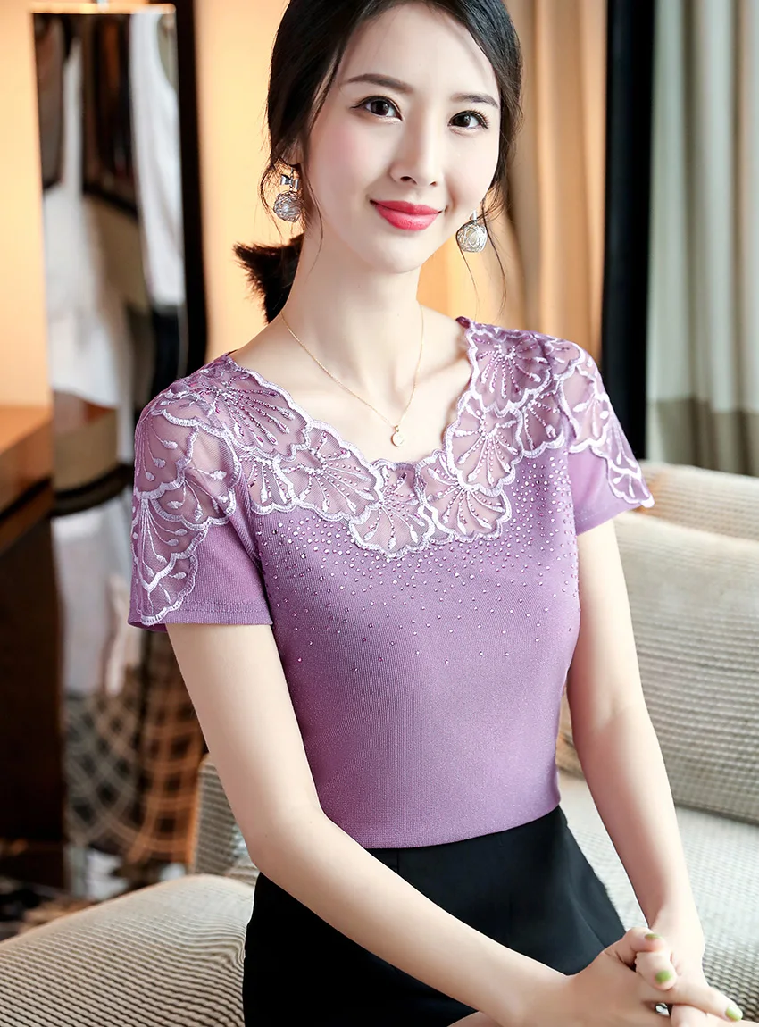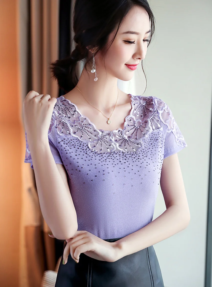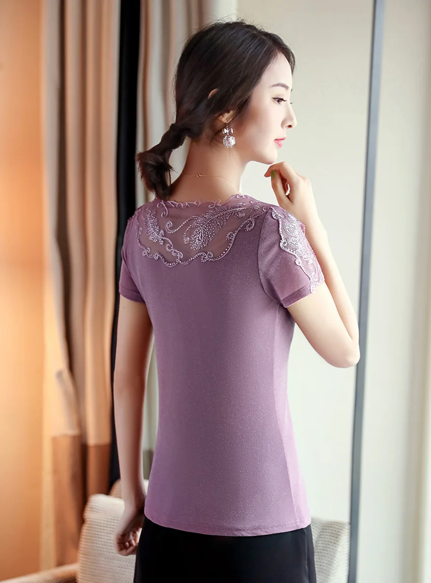 Женская футболка, Новые поступления 2021, летние сетчатые Топы с коротким рукавом, модные повседневные женские топы с вырезами, кружевная рубашка в стиле пэчворк