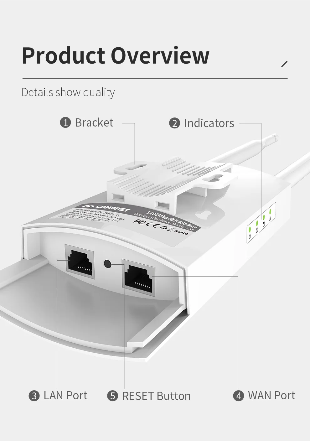 Уличная точка доступа Comfast AC1200, 2,4 ГГц, 5 ГГц, гигабитный маршрутизаторAPповторитель, антенна Wi-Fi дальнего действия для уличного сада