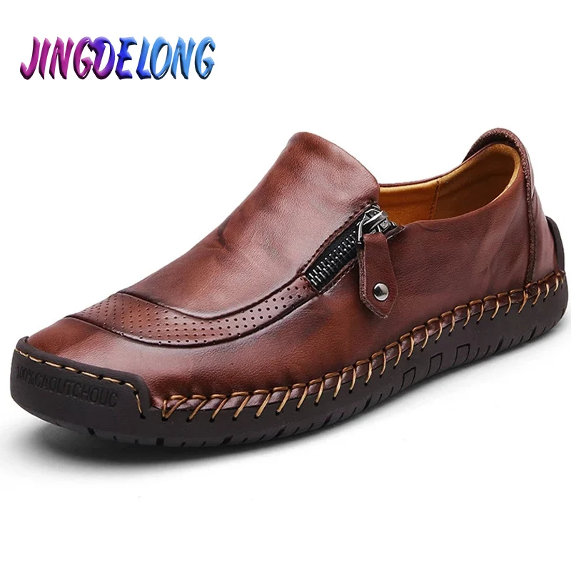 Классические мужские повседневные туфли из натуральной кожи; Дышащие мужские мокасины на плоской подошве; Лоферы на молнии; Мужская обувь для вождения; Большие размеры 38-48