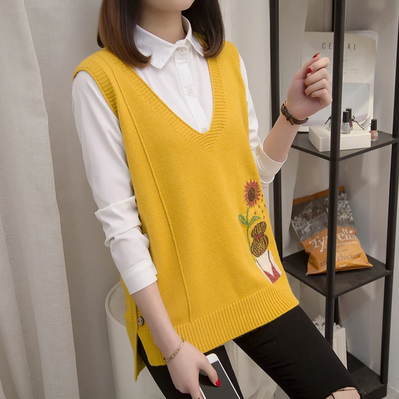 Новая Корейская трикотажная рубашка с V-образным вырезом, новый свитер с пуловером, жилет для девушек с V-образным вырезом, жилет