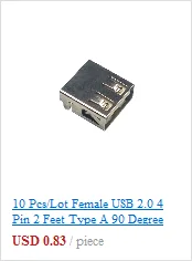 10 видов стилей 10 шт.лот USB 2,0 DIP 4-контактный 2 ножной тип A 90 вставной разъем для прямой зарядки и передачи данных