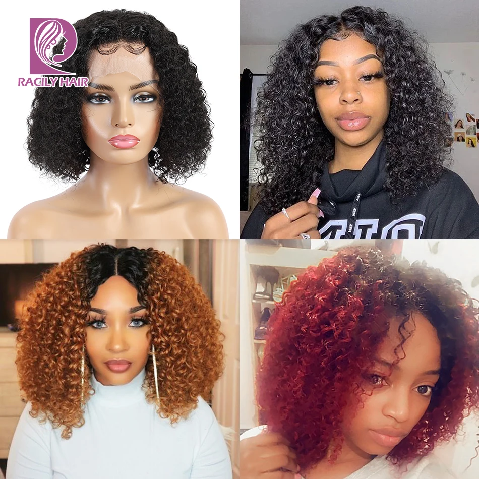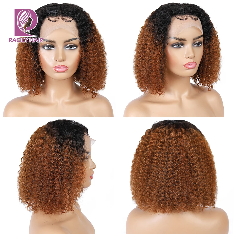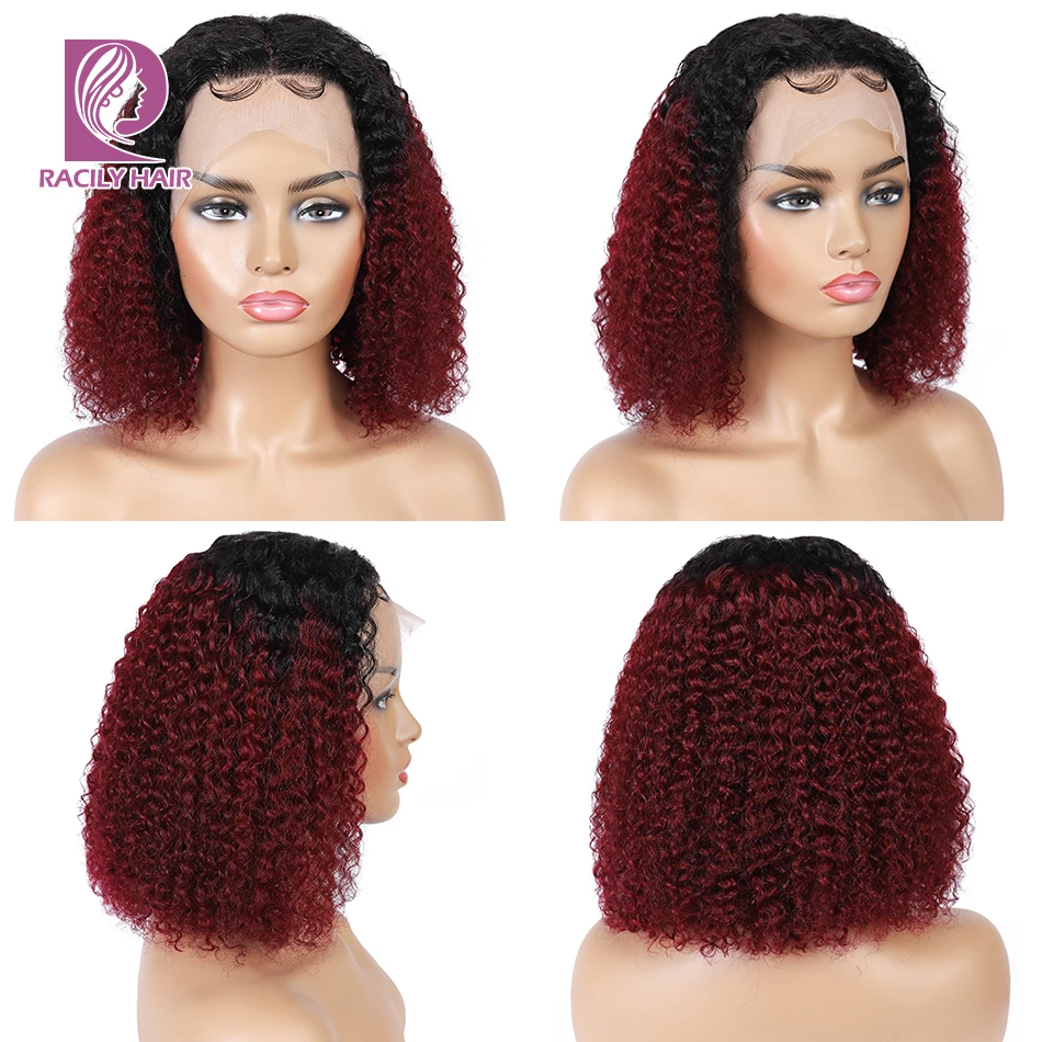 Racily волосы Омбре Боб кружевные передние парики Короткие вьющиеся человеческие волосы парики для женщин бразильский кудрявый Боб прозрачный кружевной парик