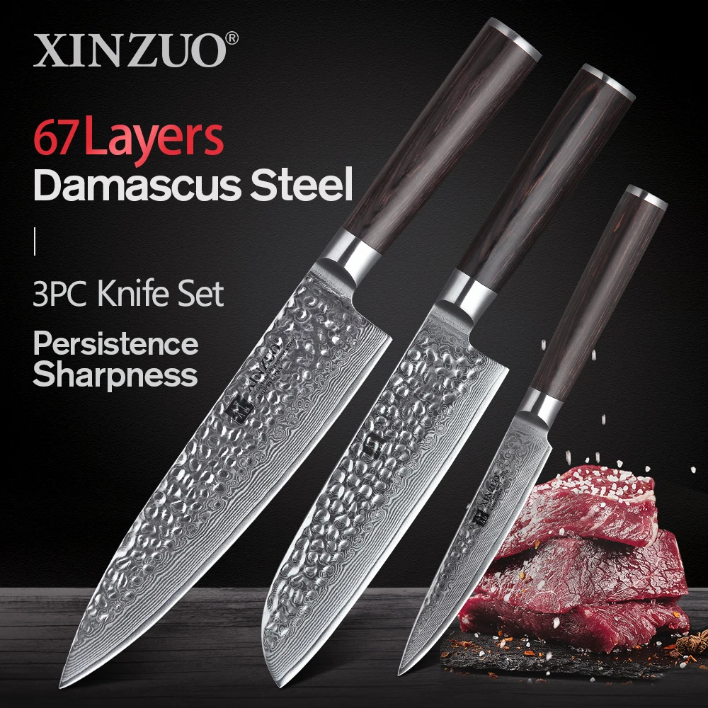 Набор кухонных ножей из 3 предметов, искусственный кухонный шеф-повар сантоку, обрезка овощей, 67 слоев, VG10, инструменты для приготовления пищи из дамасской стали