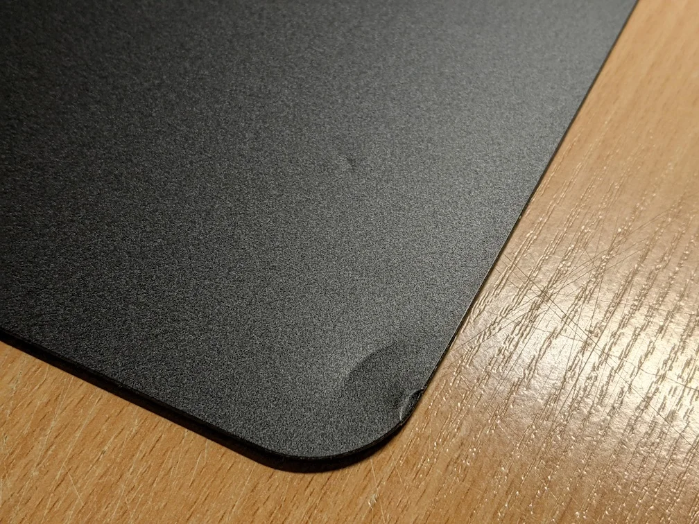 Чесно кажучи, я маю двоякі враження від цього коврика. Він прекрасно тримається на поверхні, але в цей же час його поверхня дуже слизька. і все б нічого, та при русі мишки є досить неприємне шарудіння із-за цього. Потрібно думати які використовувати глайди на мишці. Ну і не обійшлось без пошкодження під час транспортування.