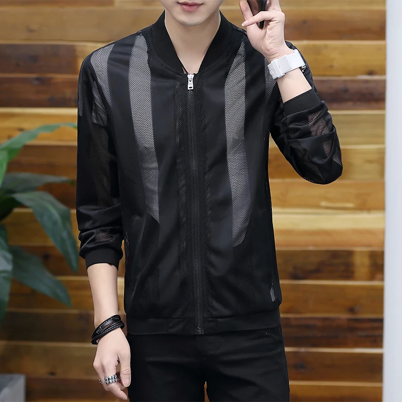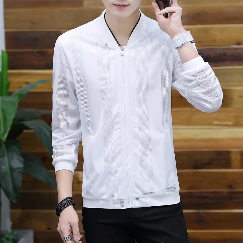 Мужская ветровка в полоску, легкая и дышащая тонкая прозрачная куртка, быстросохнущая, летняя, 2019