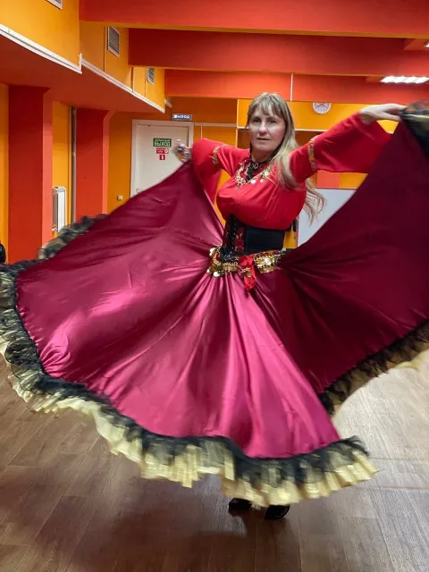Тип товара: Цыганская юбка фламенко, испанское танцевальное платьеДлина юбки: эластичная лента 90 см