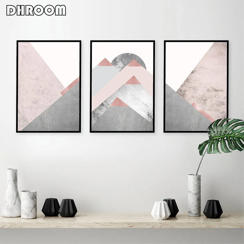 Скандинавский стиль розовый и темно-синий настенное искусство абстр...