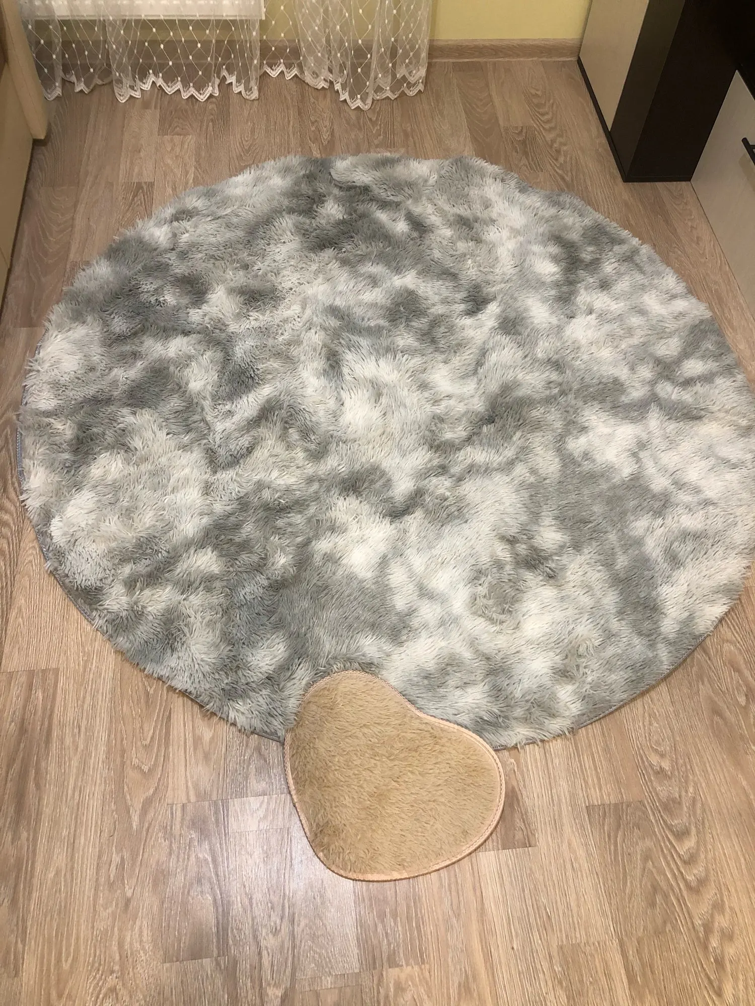 Отличный ковёр, правда оказался тоньше, чем на картинке. В подарок даже ещё один маленький фиолетовый коврик положили. Я заказывала голубой круглый ковёр, цвет идеально совпадает с картинкой. Единственный минус - по краям обшивка выглядывает и она намного светлее по цвету, чем сам ковёр, но это не так существенно. Всё приехало в срок, размер сошёлся (100×100)