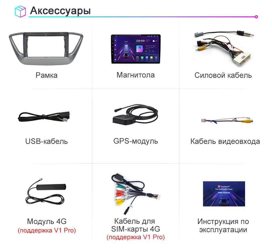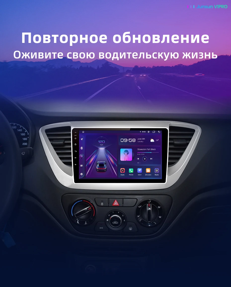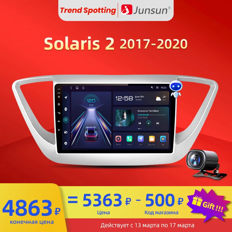 Junsun V1pro Беспроводной CarPlay автомагнитола Android Auto Аудио для авто мультимедиа автомобиля для хендай солярис 2 For Hyundai Solaris 2 Verna 2017-2020 4G 2дин магнитола андройд GPS магнитола для авто