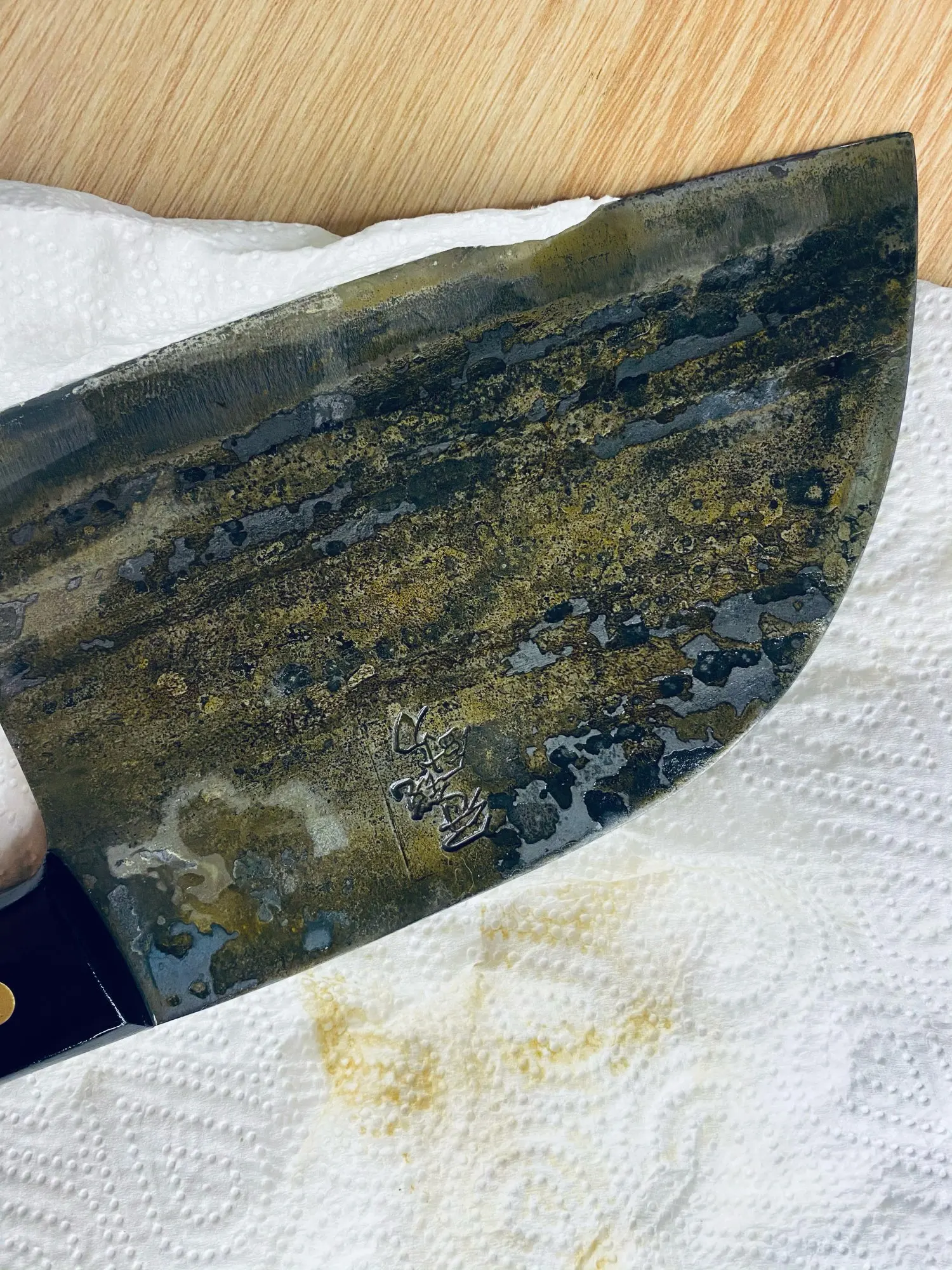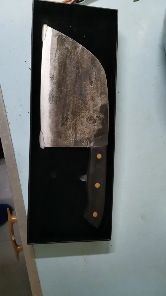 Очень хороший нож. Он может легко резать мясо и кость. Помните, что это углеродистая сталь. Это не нержавеющая сталь. Всегда тщательно высушите после стирки. Я использую масло для кухни, чтобы предотвратить ржавчину.