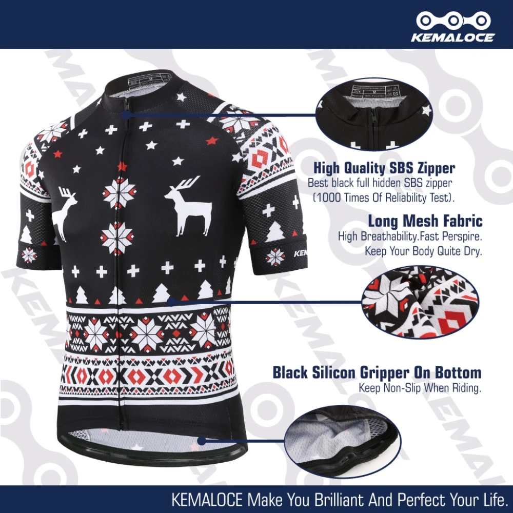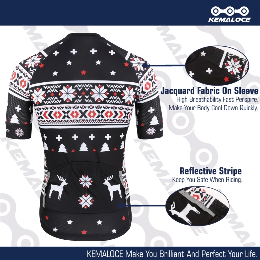 Велосипедная майка от морщин KEMALOCE, черная Рождественская одежда с коротким рукавом, быстросохнущая ретро-футболка