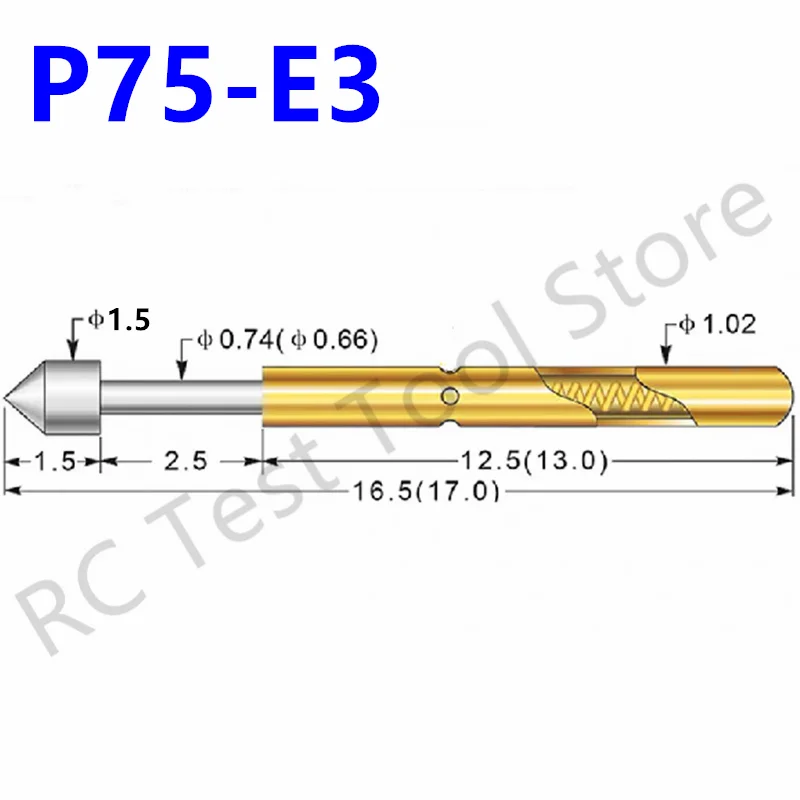 100 шт., пружинный зонд для фосфора, меди, никеля, диаметром 1,5 мм, длиной 16,5 мм, E-Образный Пружинный зонд для электроинструментов