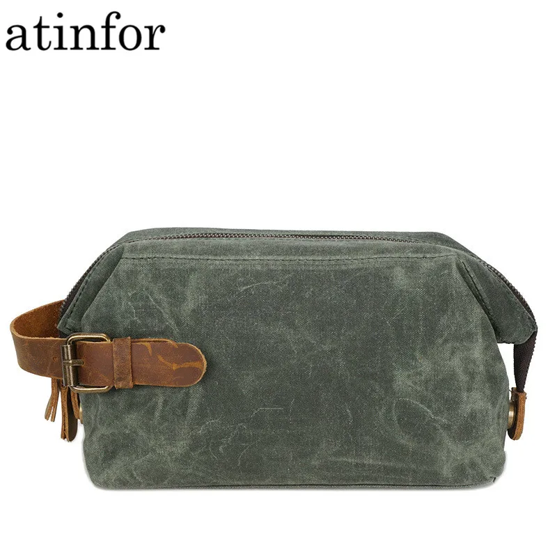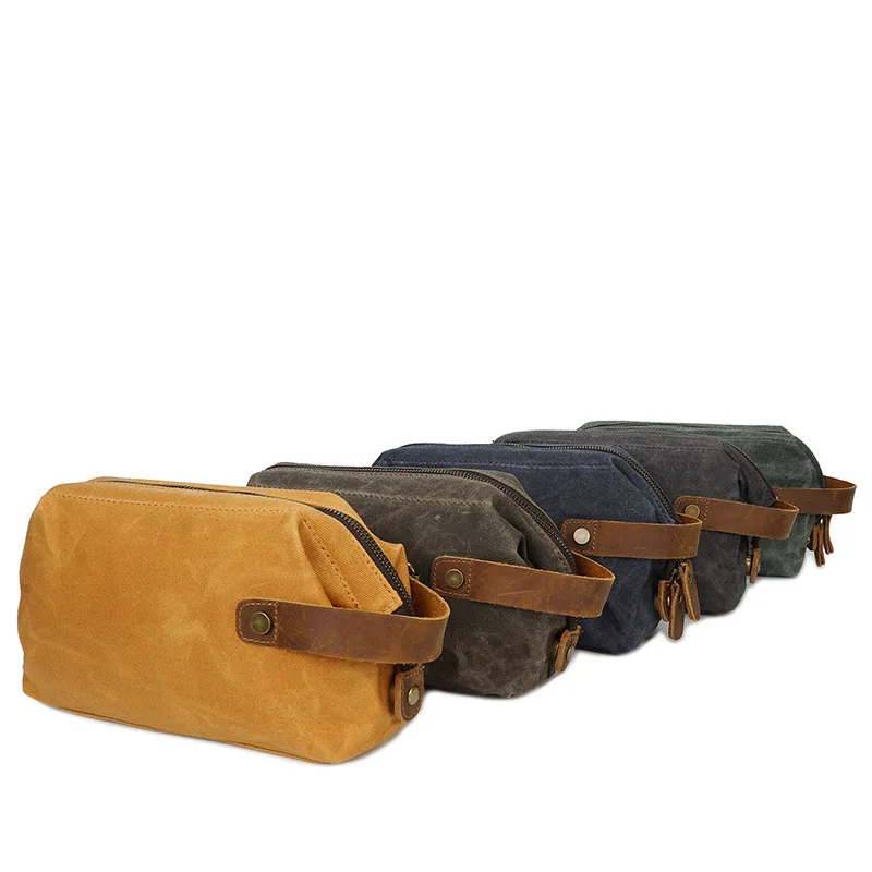 Водонепроницаемая сумка для макияжа из вощеной холщовой и натуральной кожи, дорожный винтажный саквояж для косметики, дорожный клатч