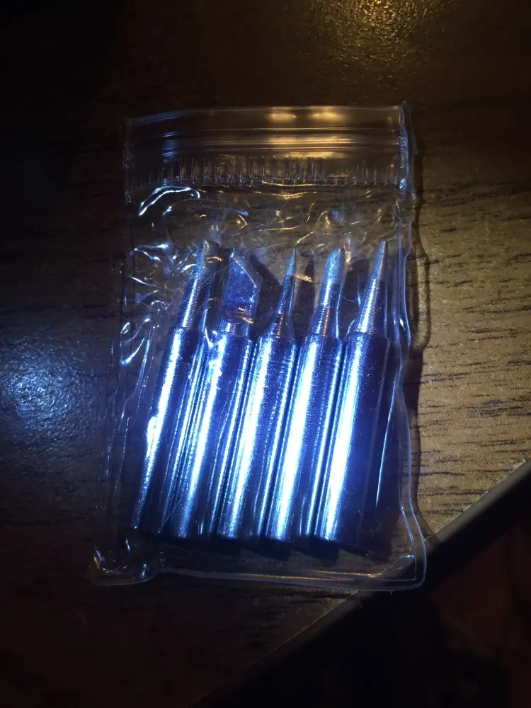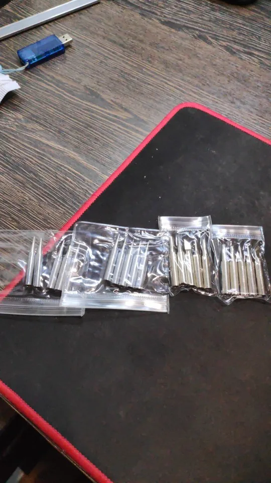 Долго ждал. Товар вообще не качественный, я многого как бы и не ждал, но и не такой отврат. Будто дети из песочницы в кузнеца играли. Каждое жало уебано. Конусные наконечники кривые, "К" наконечник со сколами, и т.д. Боюсь что при пайки они сами расплавятся раньше припоя, или сгорят к хуям.