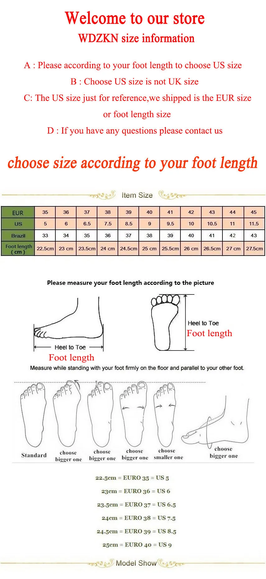 Размер 10 подходит на разм. 40рос. Очень жаль что заказала на разм. 39 разм. 10 велики. По качеству вроде хорошие. Буду ещё раз заказывать только на размер меньше.