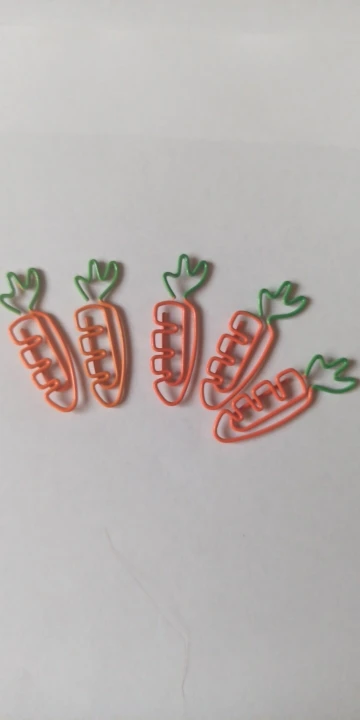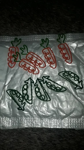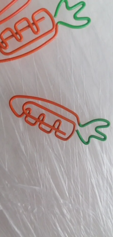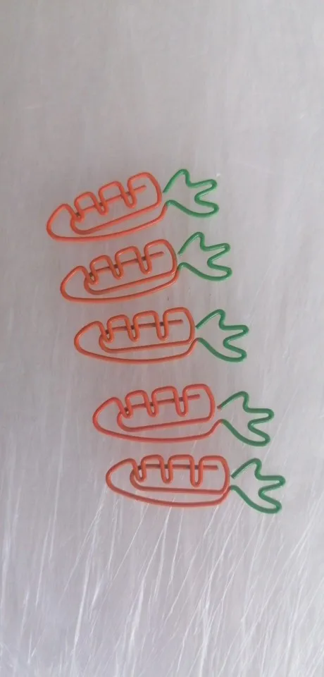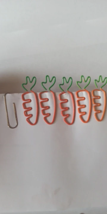 Скрепки пришли в прозрачном пакетике, правда он был порван, но вроде бы все морковачки на месте. Оказались оч милыми, мне понравились, буду пользоваться. Для сравнения сфоткала с обычной скрепкой, не намного больше, но зато удобные и красивые.