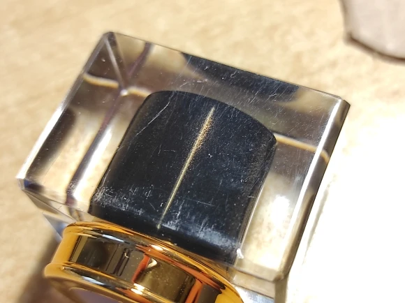 Товар был упакован очень тщательно, ничего не разбилось. Флакон выглядит красиво, как на фото. Единственное замечание - вся крышка в мелких царапинах, есть одна побольше (смотрите на фото). При этом крышка была дополнительно упакована. Так что скорее всего ещё до упаковки успели повредить