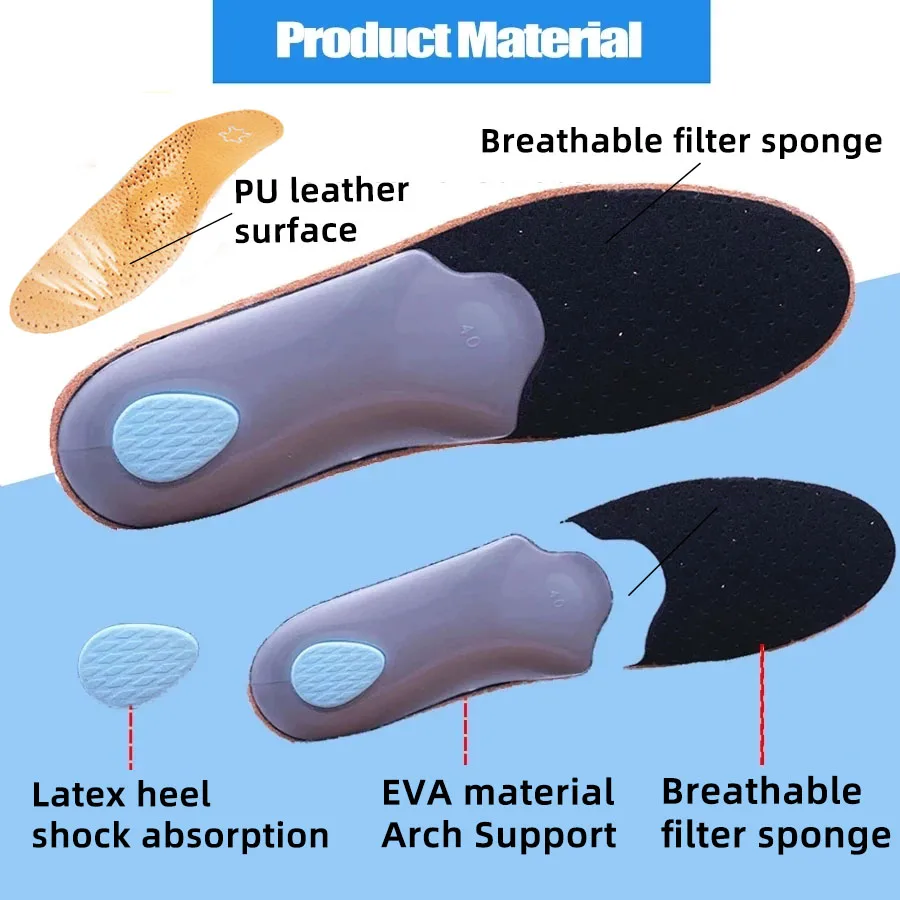 Стелька ортопедическая кожаная Стельки ортопедические для мужчин и женщин, с супинатором плоскостопия, 25 мм