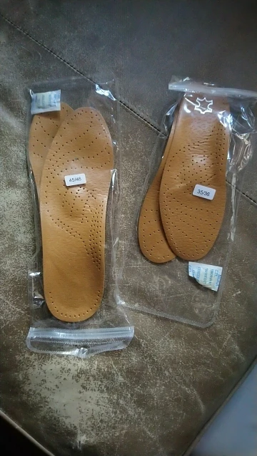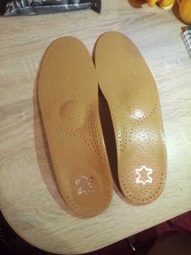 Ну такое. Не кожа. По размеру совпадает. Мягкая - ну то есть даже те части, что должны быть твёрдыми в ортопедической стельке. Долго такие носить нельзя. Ортопедические стельки нужно покупать в спец салонах, не гоняясь за низкой ценой. Толку не будет никакого....если ни вреда