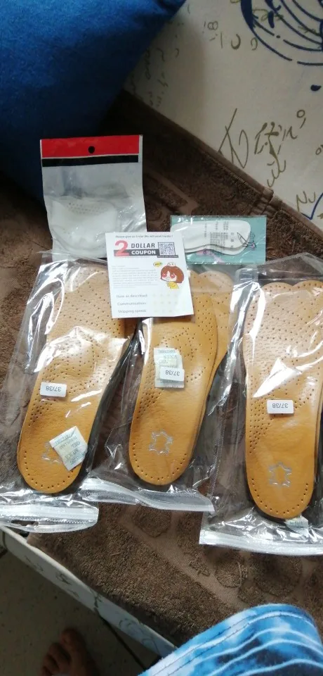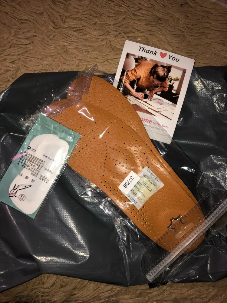 Прислали стельки 36 размер заказывала 38. Написала продавцу, продавец попросил доплатить 1 доллар за доставку и отправил стельки нужного размера. При этом 36 размер тоже у меня остался. Стельки по качеству хорошие, и в первой и во второй посылке подарочки, подкладка в тюфли под пятку вроде.