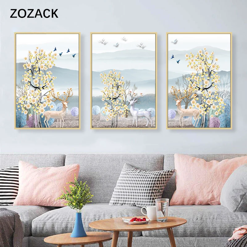 Набор для вышивки крестиком Zozack сделай сам, триптих с оленями, домашний декор