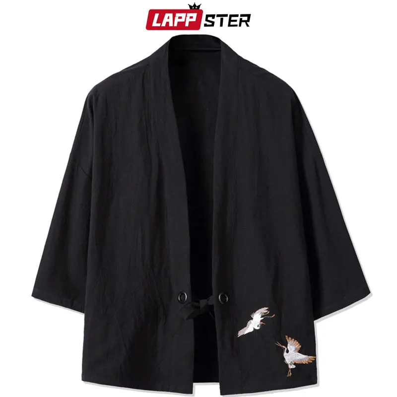 Уличная одежда LAPPSTER, кардиган-кимоно, летние топы для мужчин 2022, повседневные рубашки с вышивкой журавлей, Мужская винтажная одежда в стиле Харадзюку, 5XL