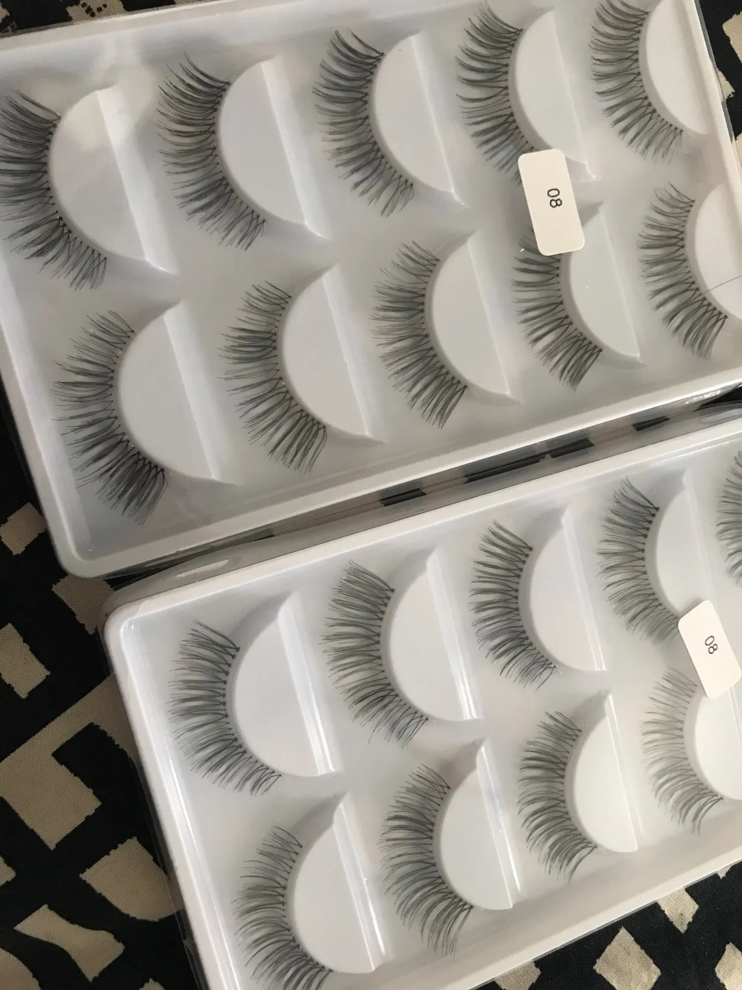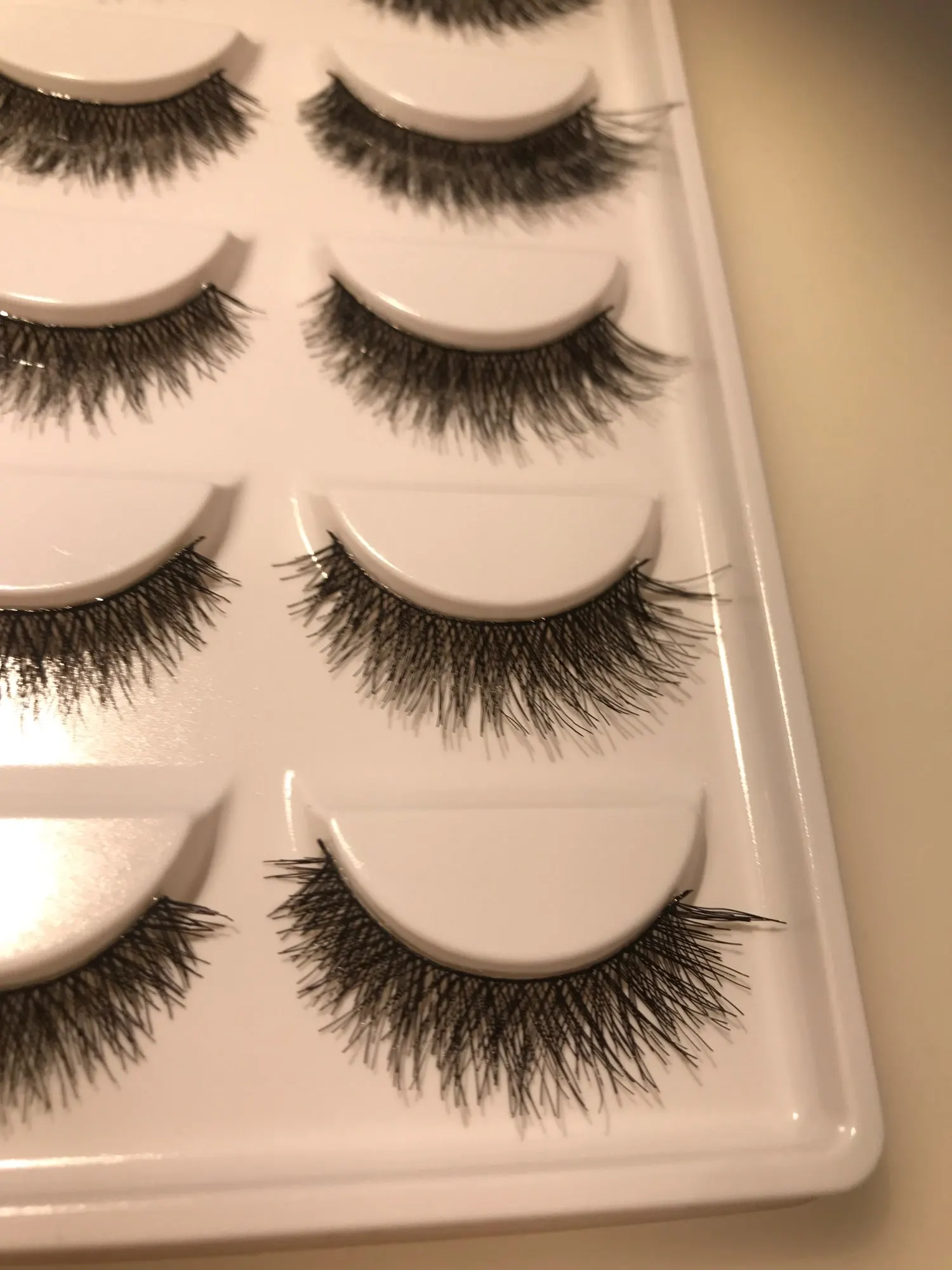 Вы выглядите подделкой. Конец ресниц не тоньше, чем толщина корня. Я бы хотел, чтобы они выглядят более естественно. Остальное отлично и подошло очень хорошо упаковано и защищено.