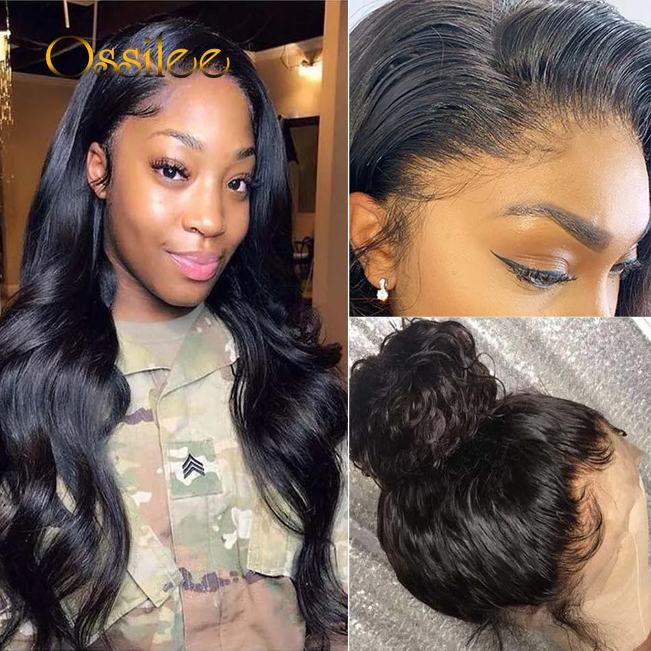Полностью кружевные парики из натуральных волос, волнистые полностью кружевные парики из натуральных волос с детскими волосами Ossilee Remy, средняя плотность 150%
