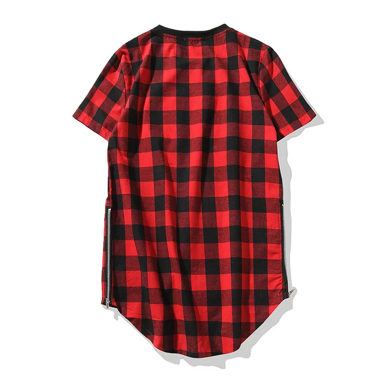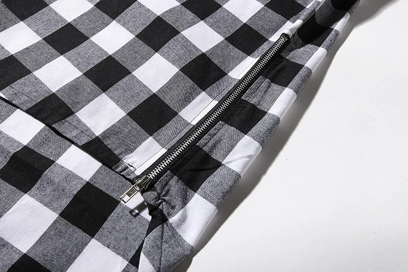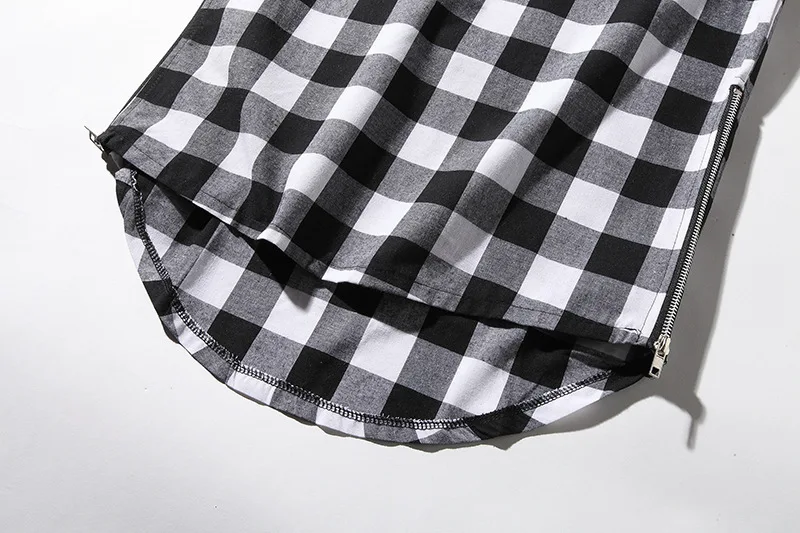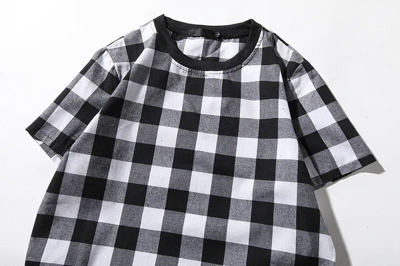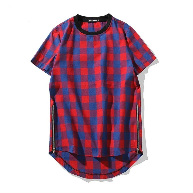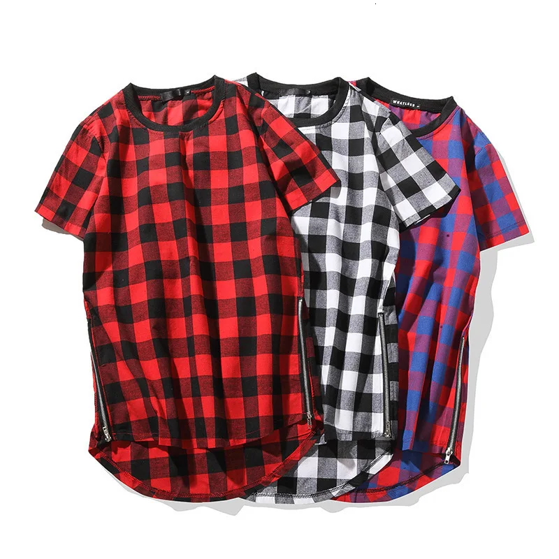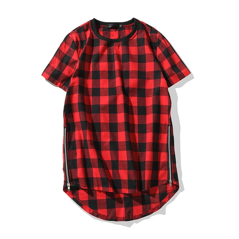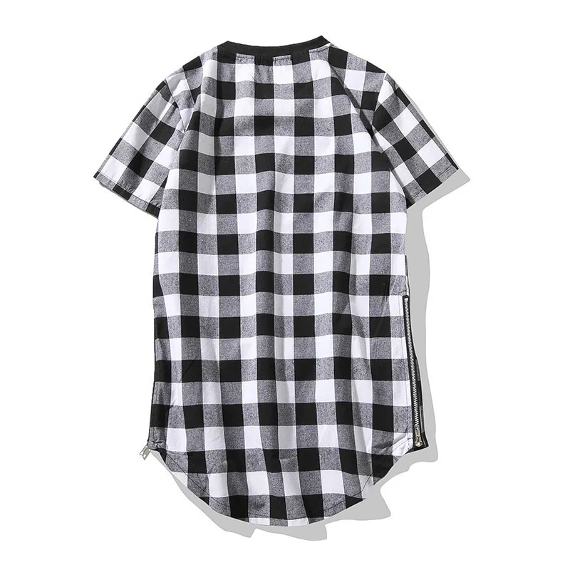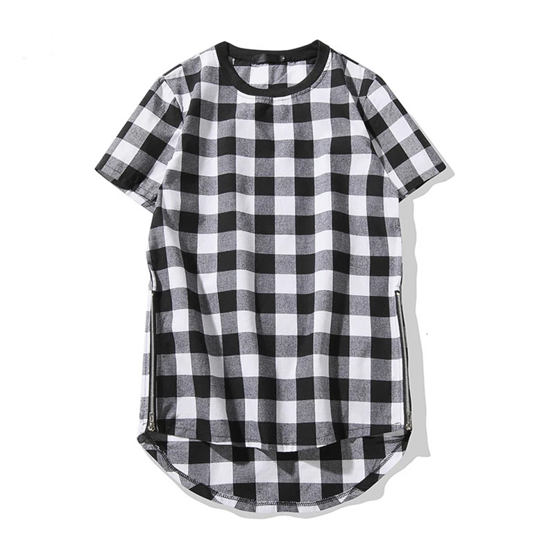 Футболка мужская в клетку, с коротким рукавом, забавная, в стиле хип-хоп, с молнией сбоку, лето 2019