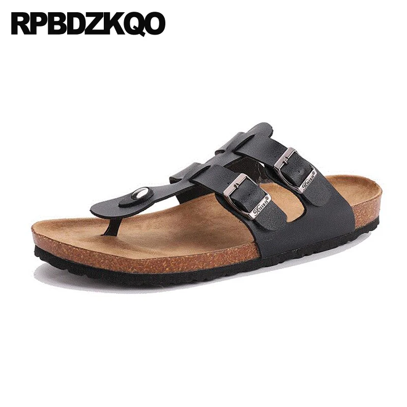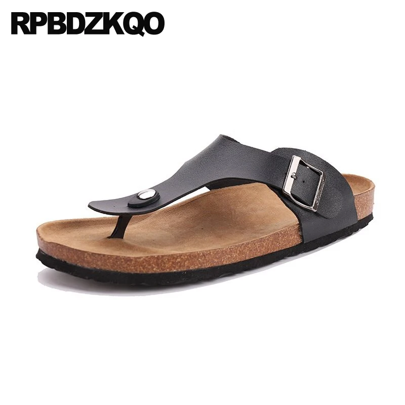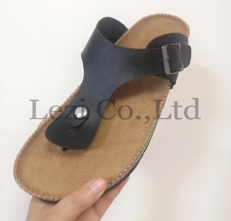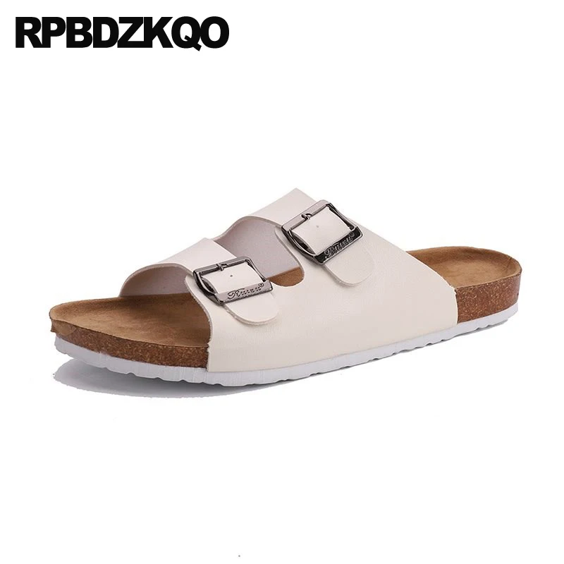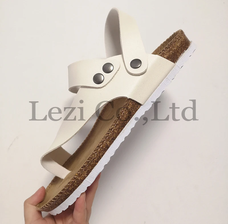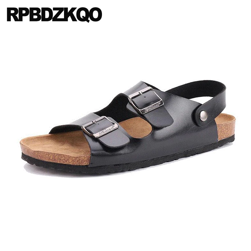 Сандалии мужские кожаные водонепроницаемые, босоножки с металлической петлей, пробковые, большие размеры 45, летние тапочки, для улицы