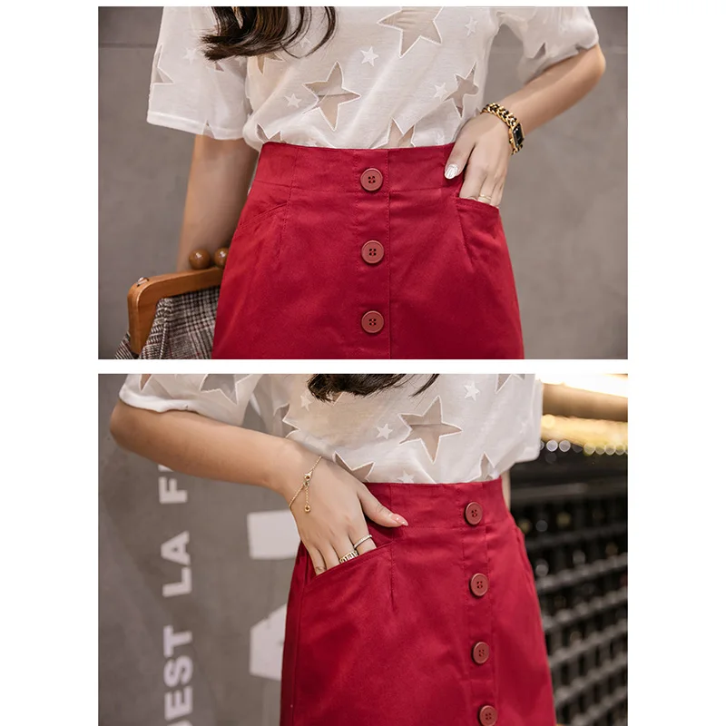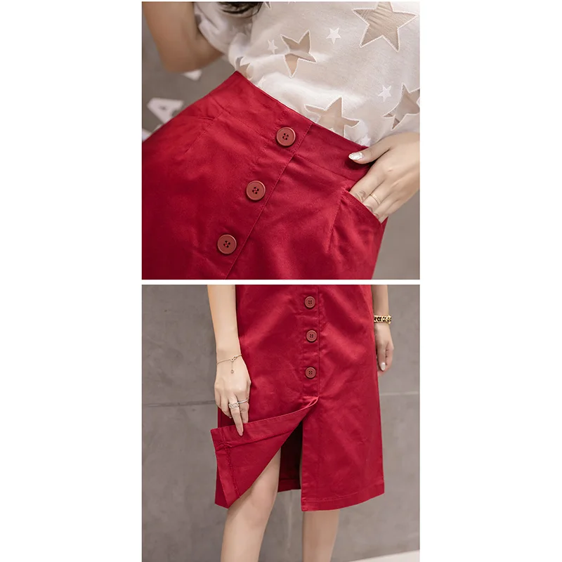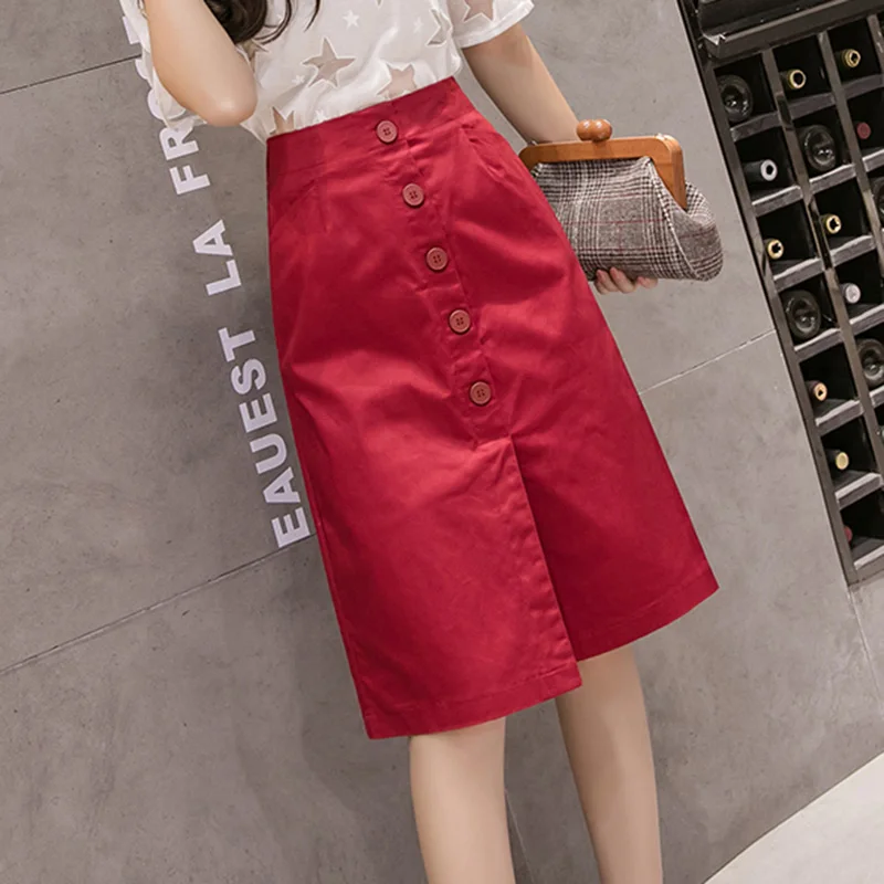 Юбка женская летняя приталенная на пуговицах с завышенной талией