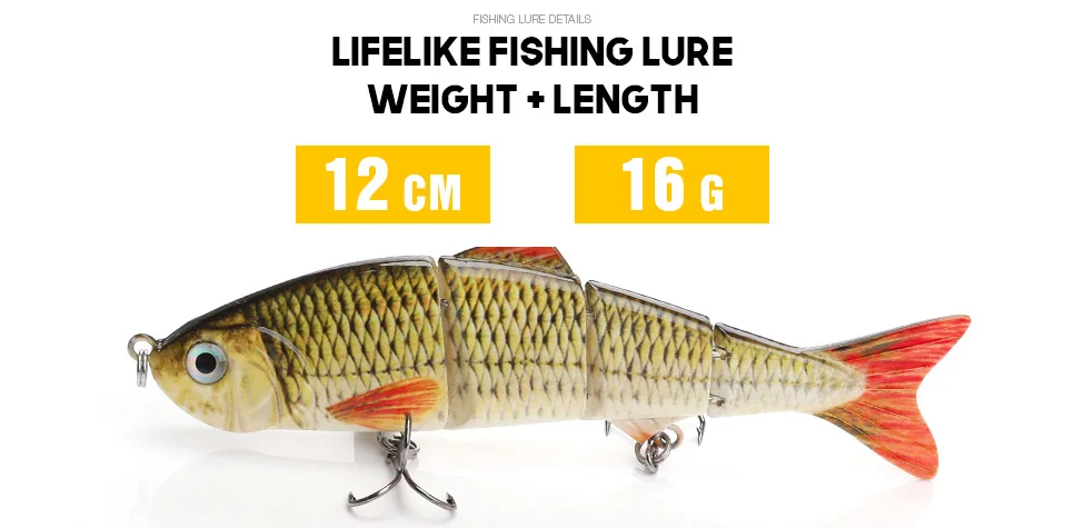Приманка рыболовная VTAVTA, Реалистичная, 4 сегмента, 12 см, 16 г, Тонущая приманка воблеры для ловли щуки