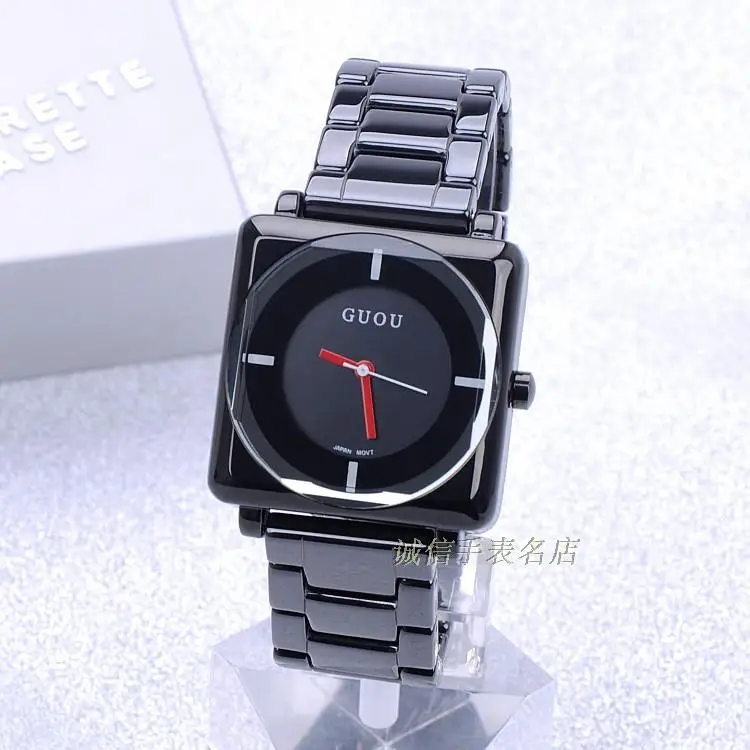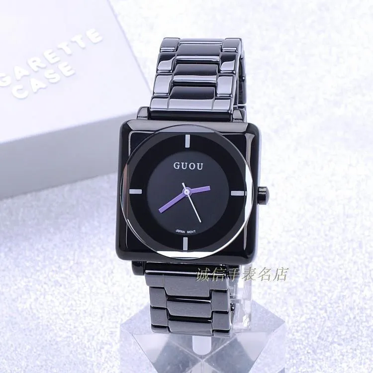Женские Кварцевые Водонепроницаемые Часы Guou, черные наручные часы с квадратным циферблатом, полностью из нержавеющей стали, роскошный подарок