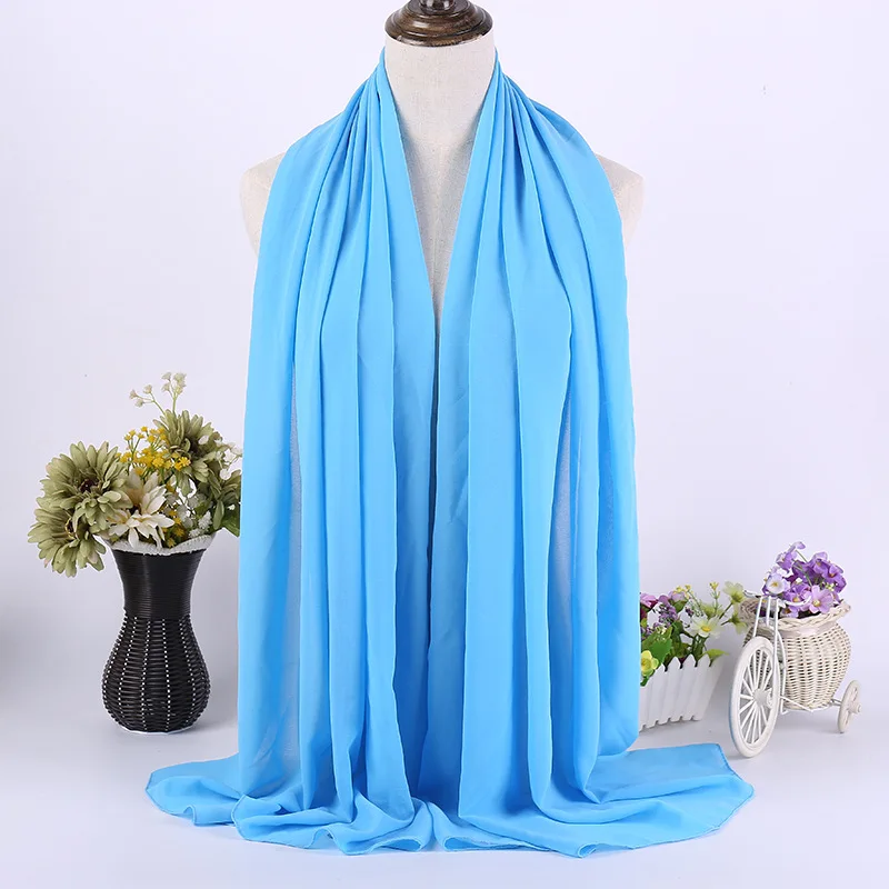Летний шифоновый шарф, хиджаб для женской одежды, однотонный трикот...